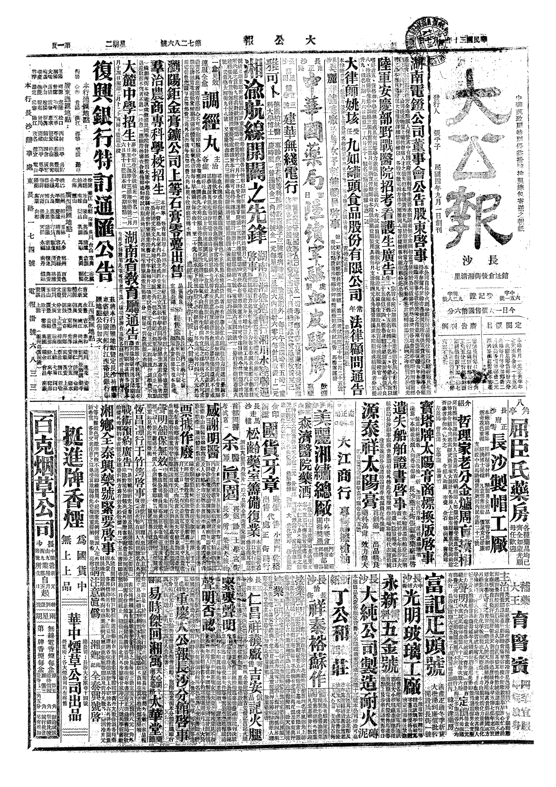 湖南各界捐资在耒阳兴建之保卫大湖南纪念塔落成。