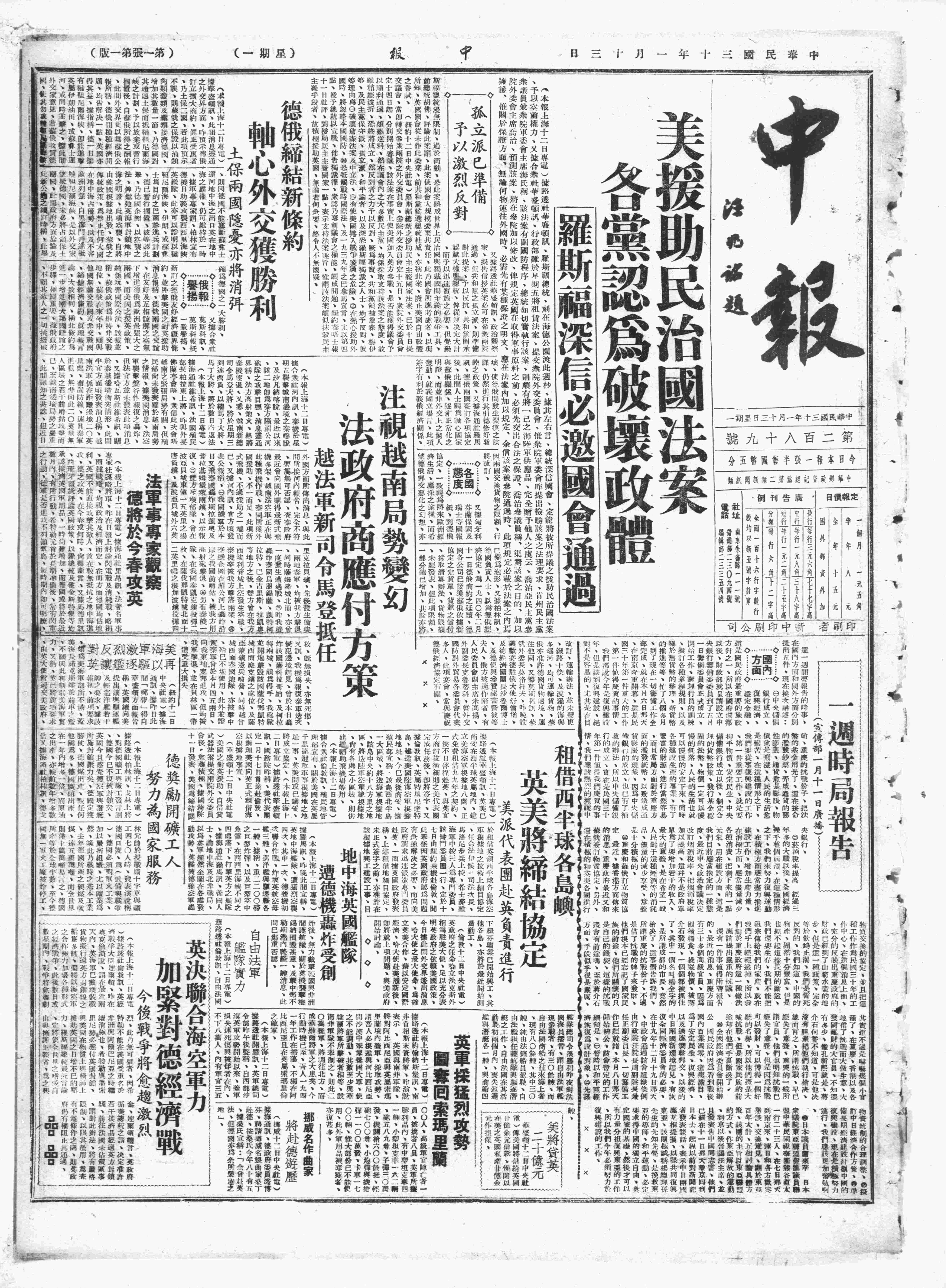 中华民国史大事记>19410113