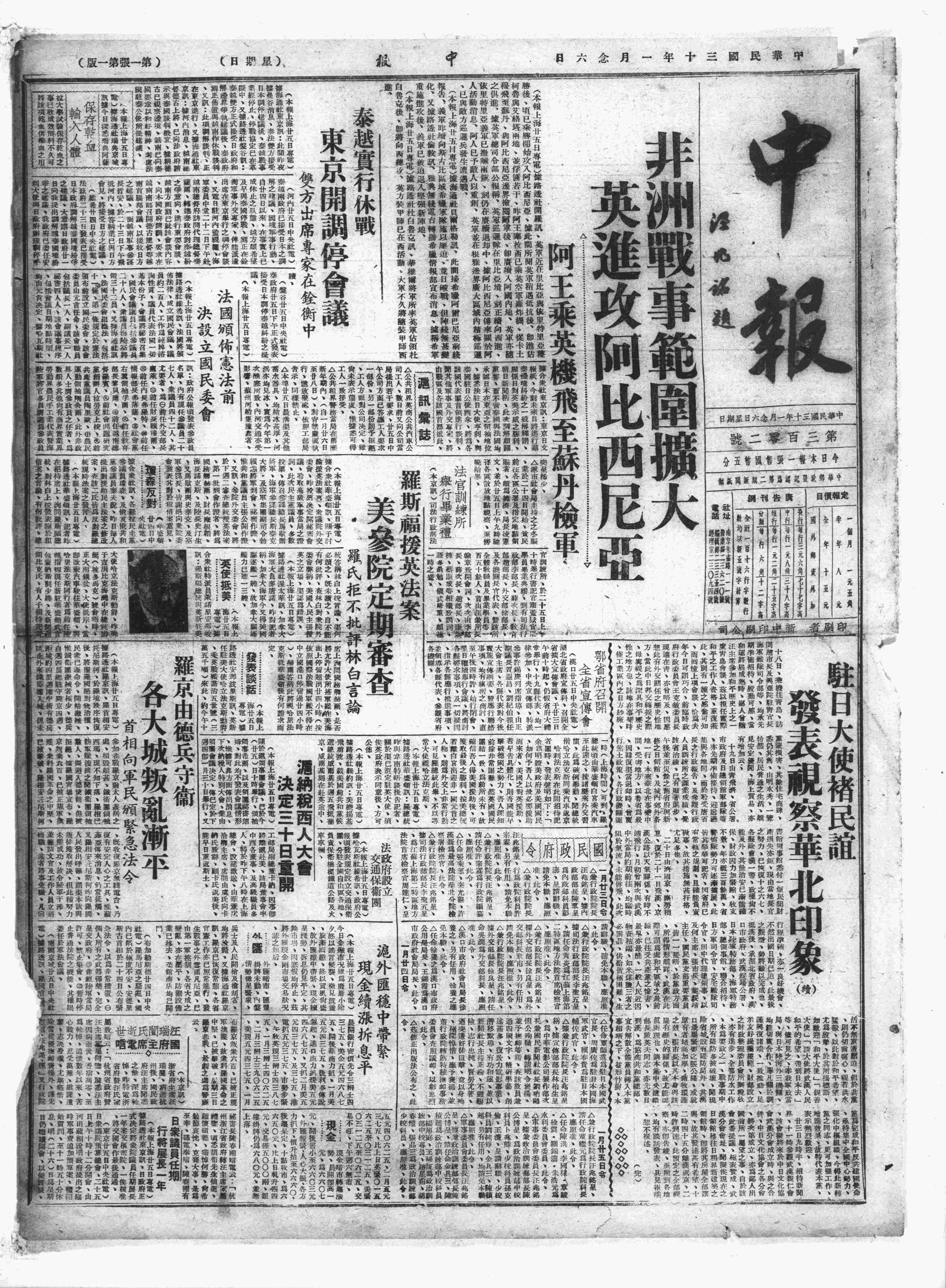 中华民国史大事记>19410126