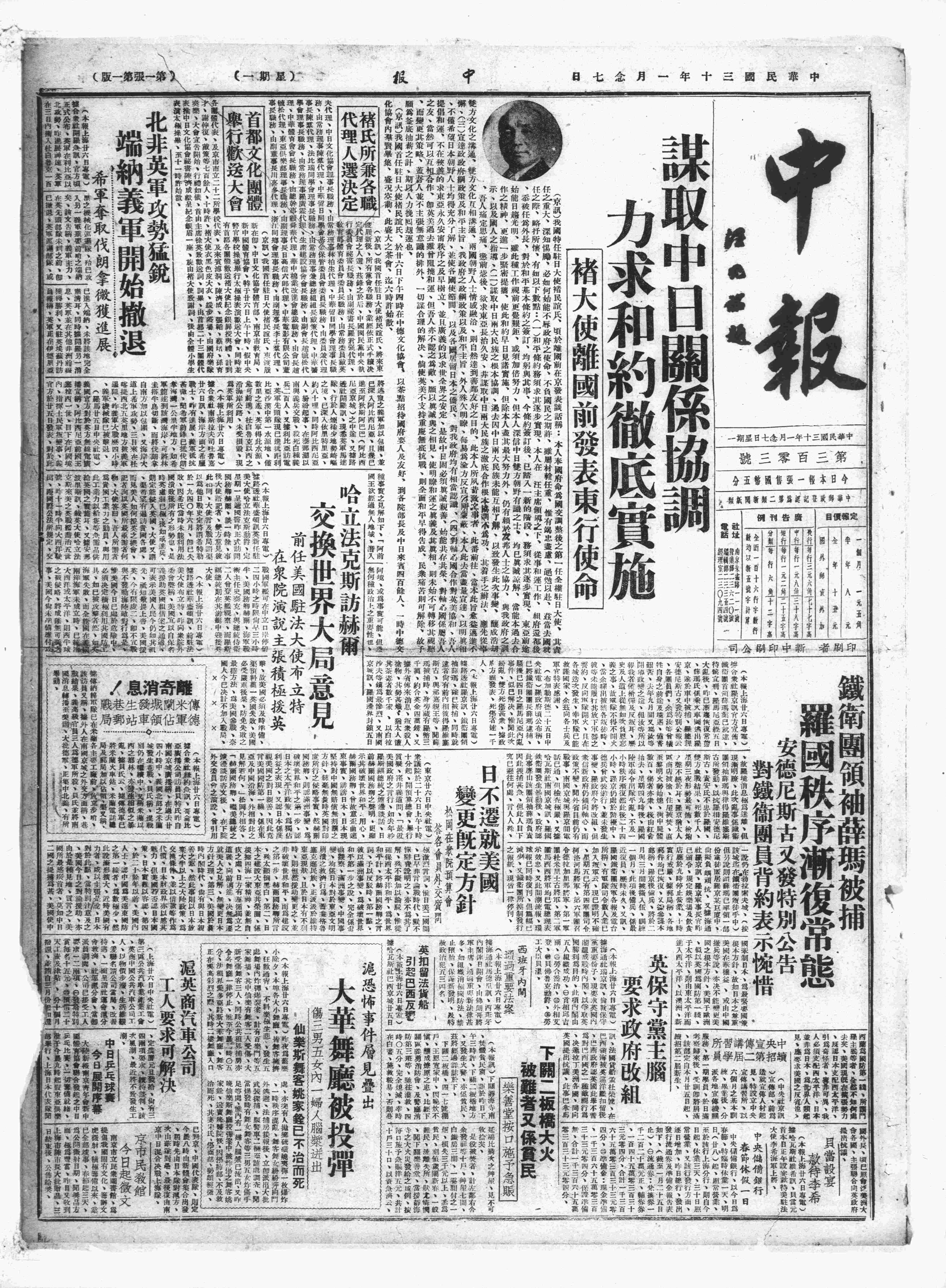中华民国史大事记>19410127
