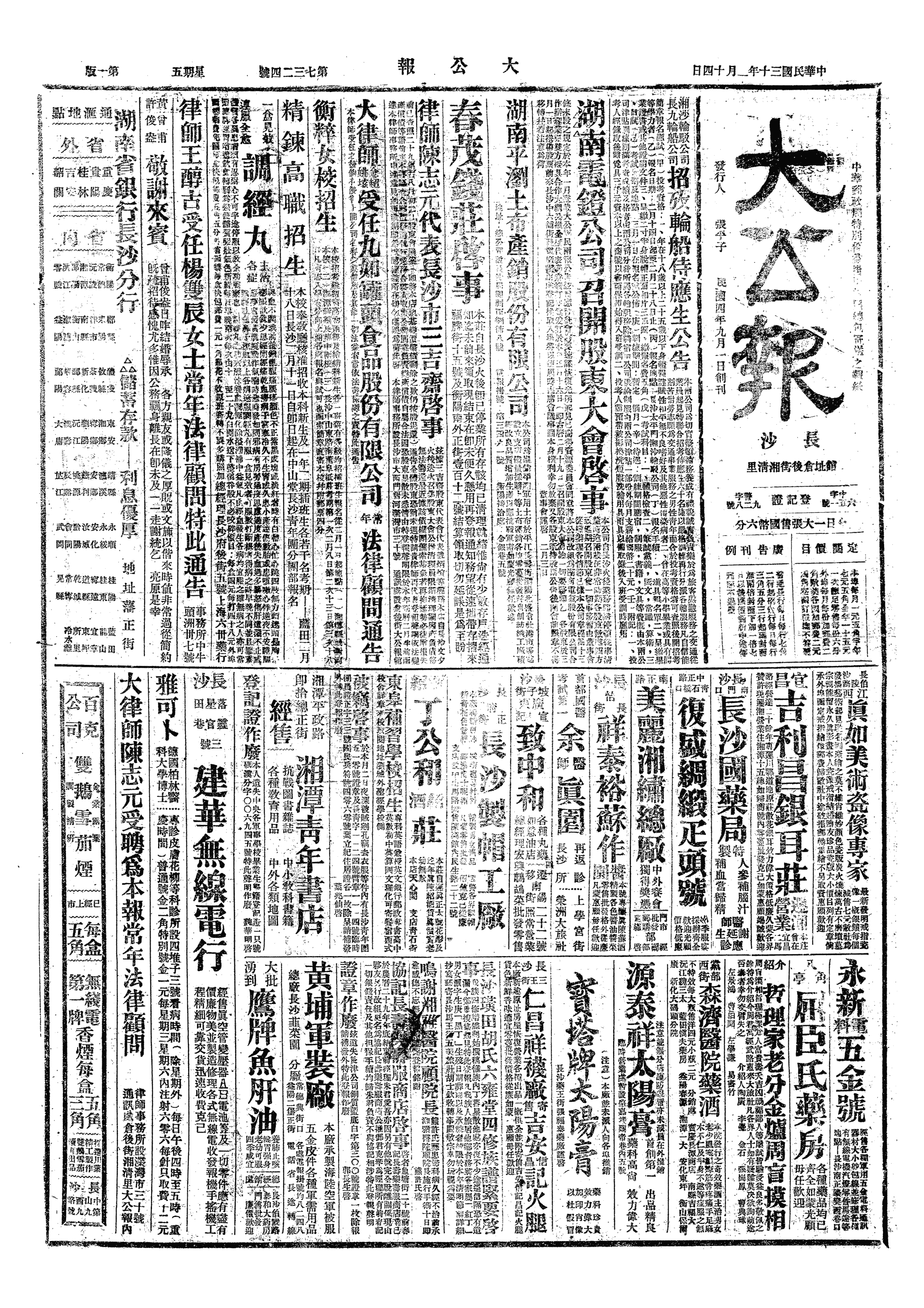 任命胡庶华为国立湖南大学校长。