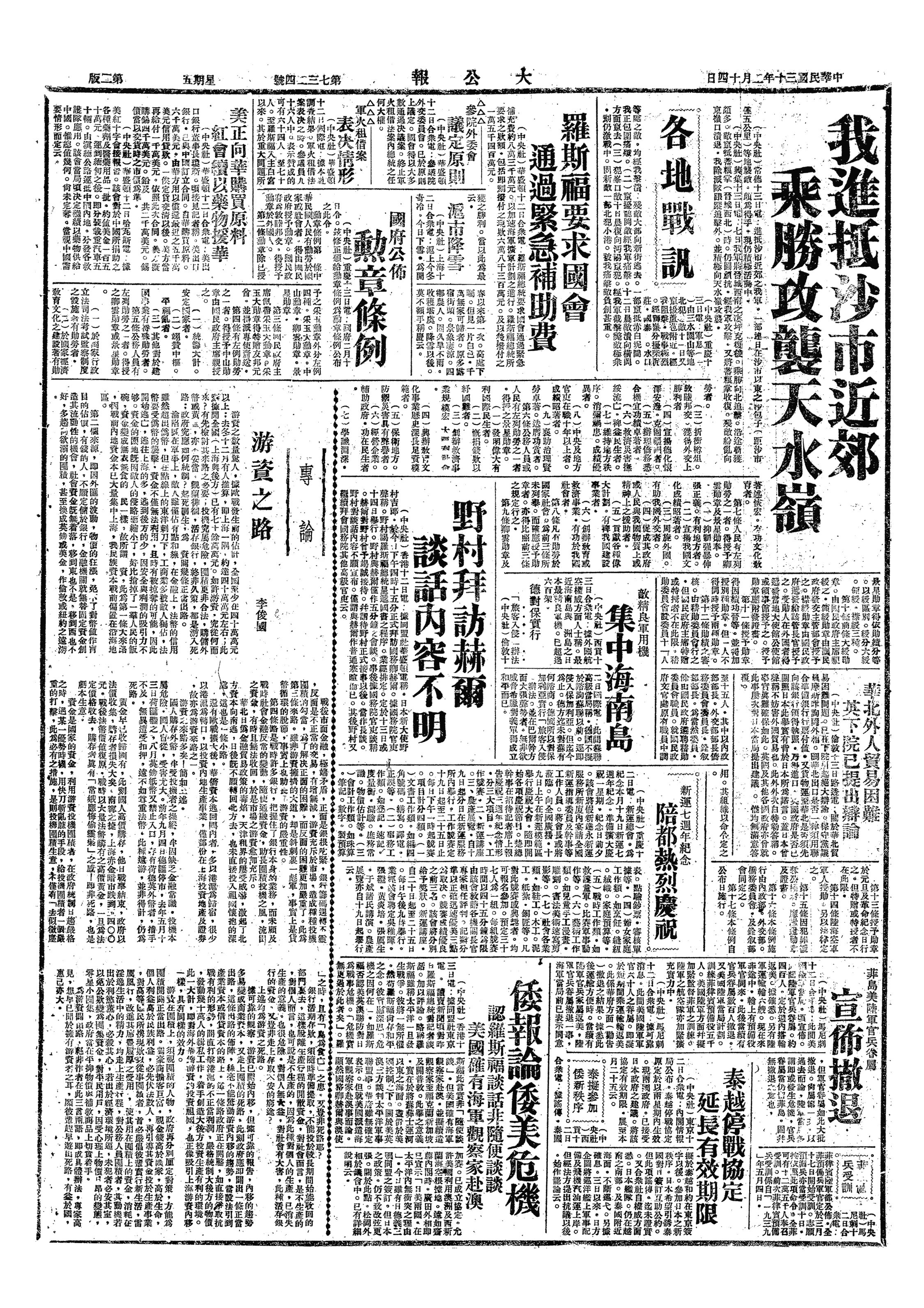 中华民国史大事记>19410214