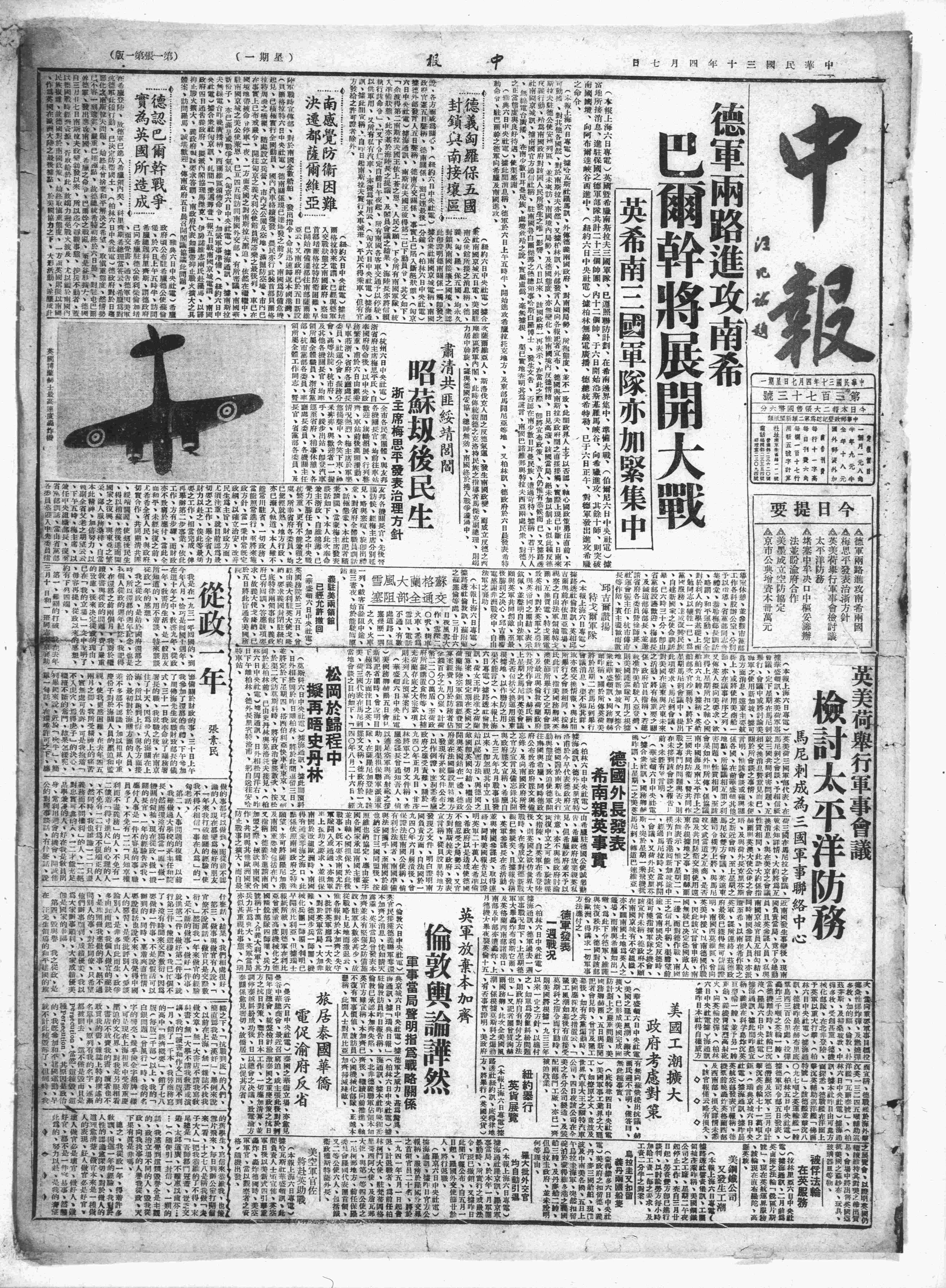 中华民国史大事记>19410407