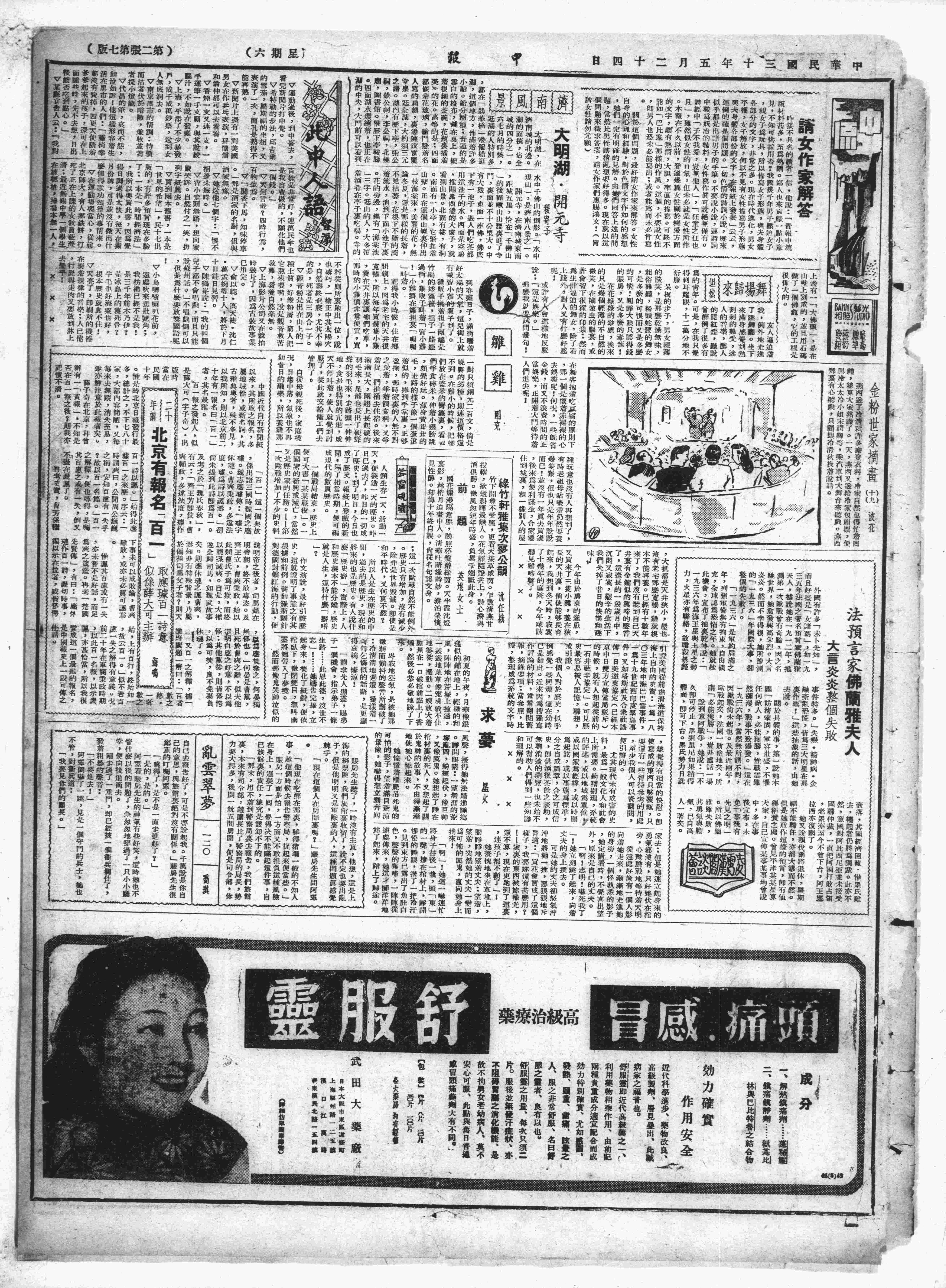 因侠看病未归,故晚餐迟至十九时左右才举行。