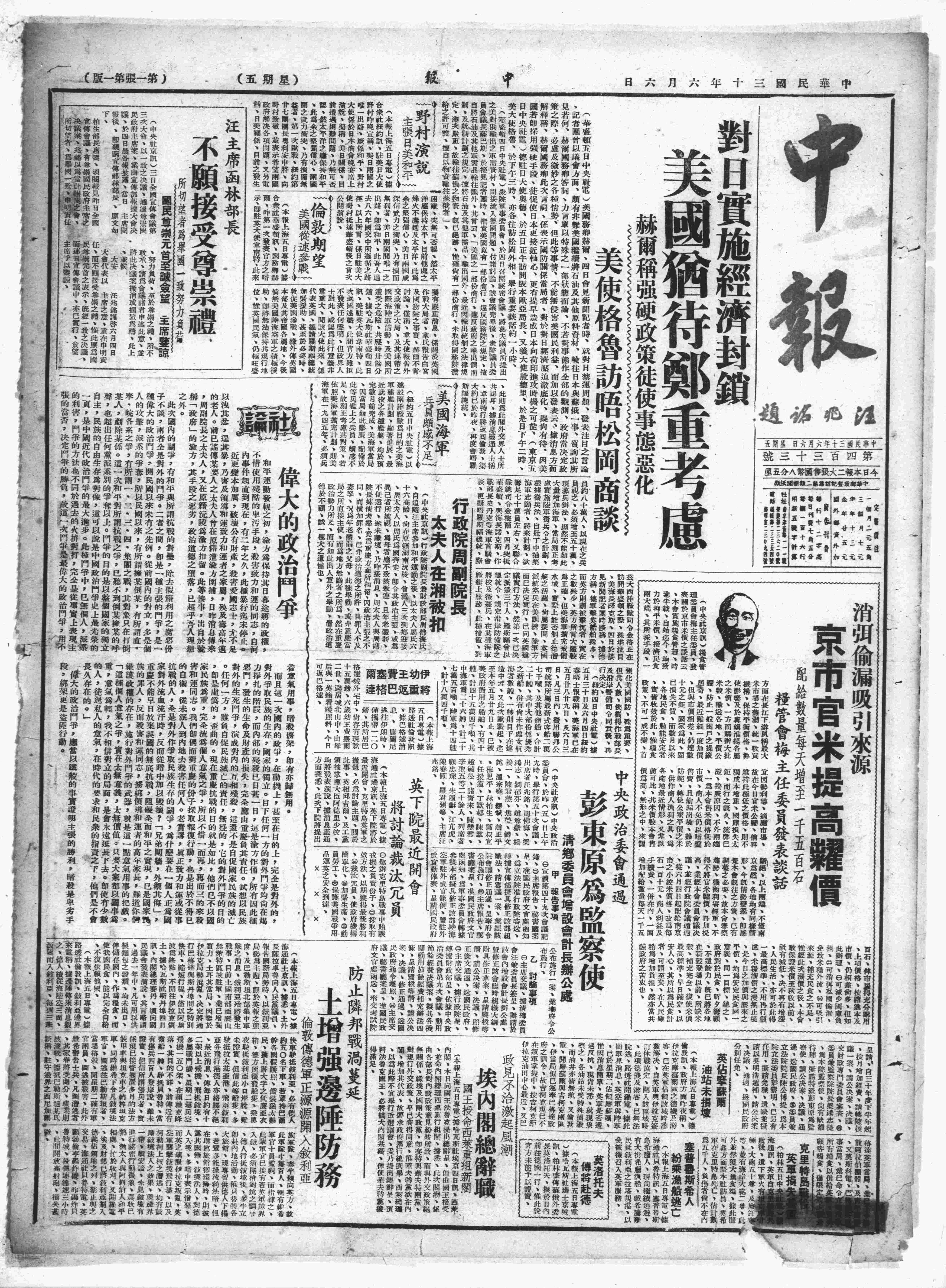 中华民国史大事记>19410606