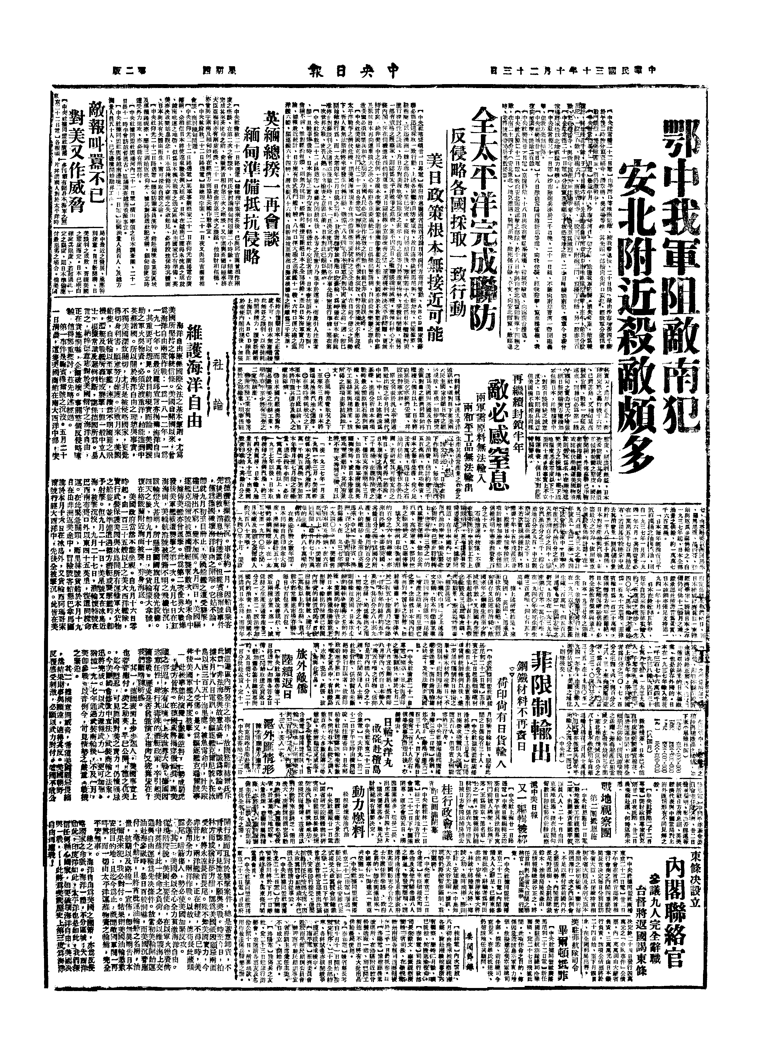 中华民国史大事记>19411023