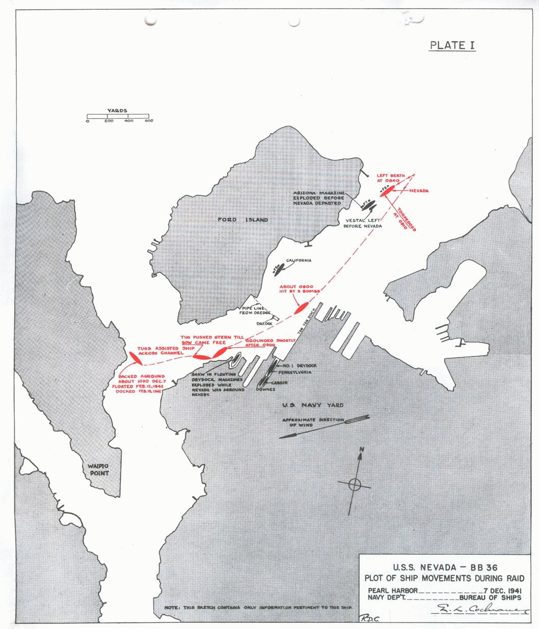 US battleship NEVADA (Captain F. . Scanland) was damaged with Ensign H. J. Christopher, Ensign F. C. Davis of VO 1, Ensign E. H. Dunlap Jr, and forty seven enlisted men and seven Marine enlisted killed and ENS E. H. Dunlap Jr, ENS A. J. Huttenberg, LT (jg) C. . Jenkins, ENS J. K. Taussig Jr, ENS T. H. Taylor, and one hundred and seven enlisted men wounded.