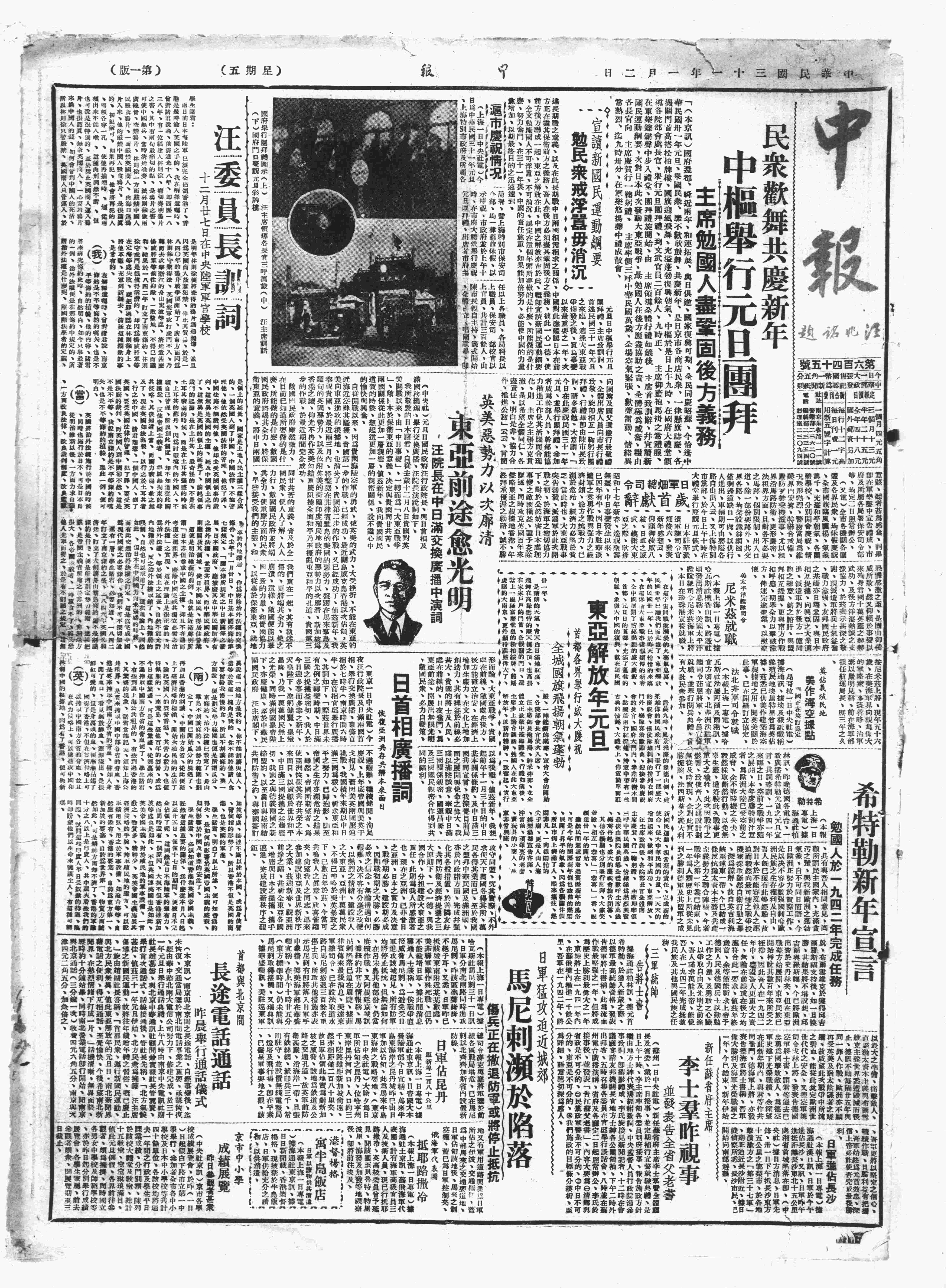 中华民国史大事记>19420102