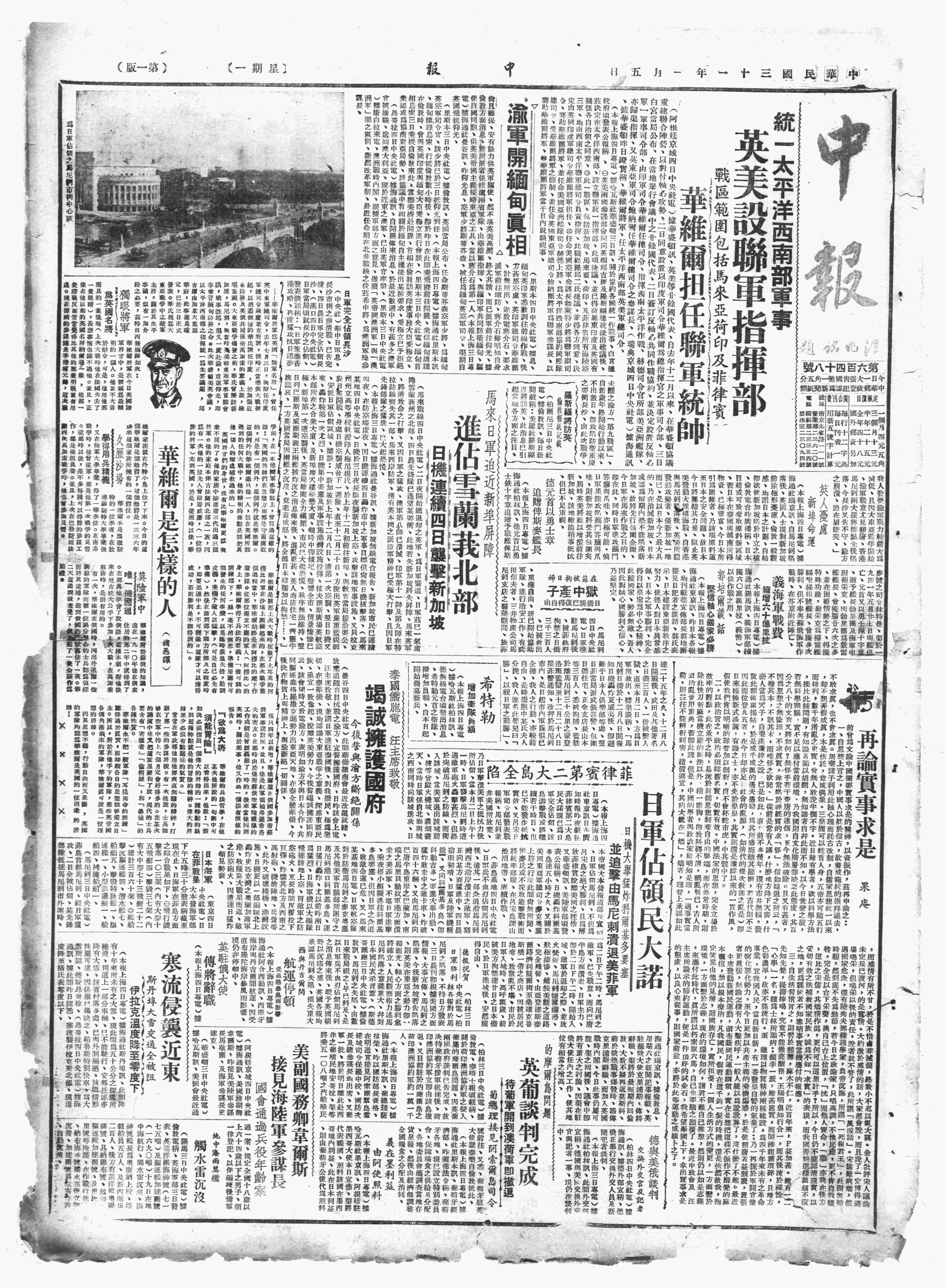 中华民国史大事记>19420105