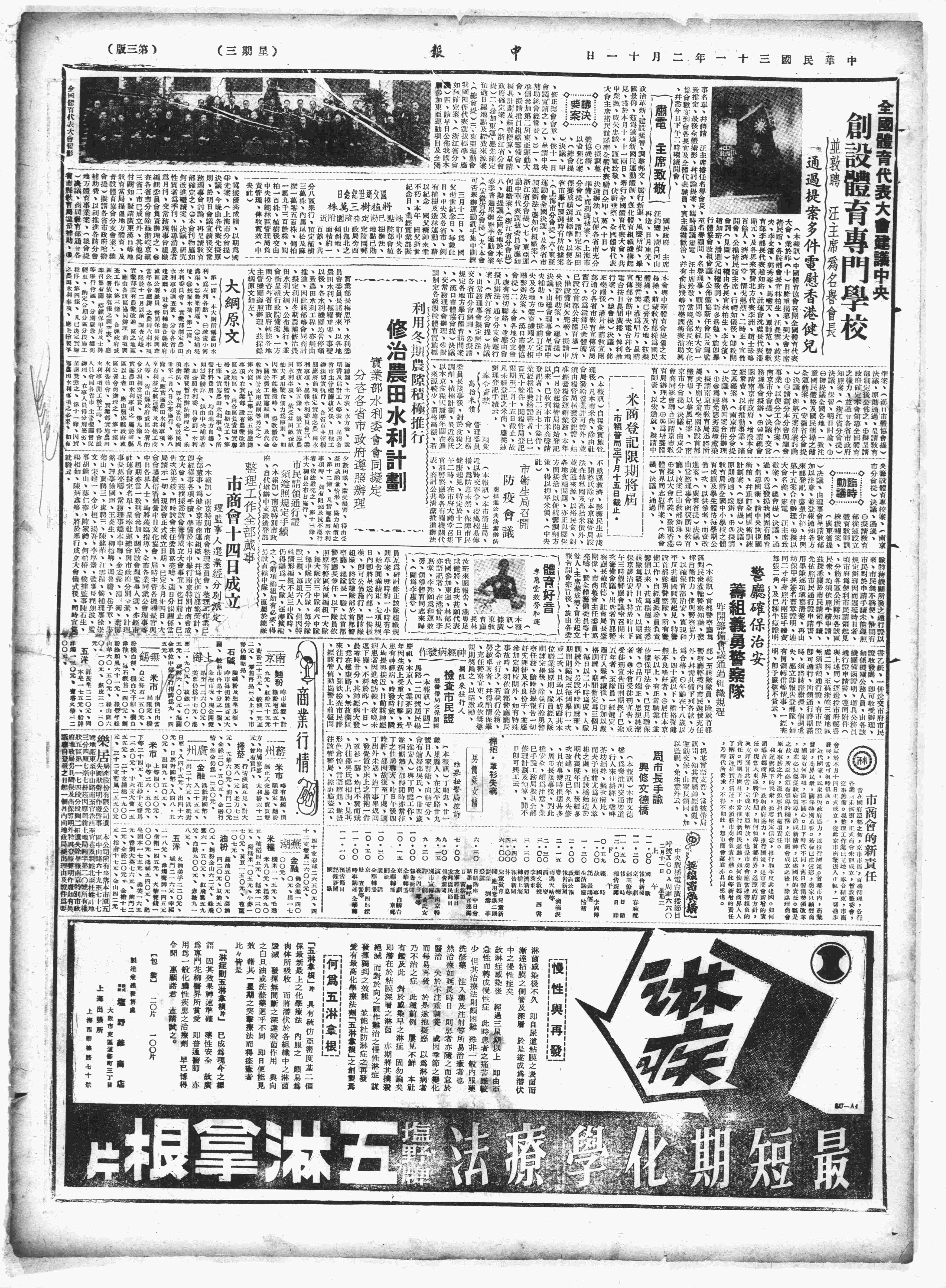 △ 中华全国体育协进会召开今年第1次董事会,董事王正廷、朱家骅等出席,决议增聘戴季陶、陈立夫、谷正纲、张治中、黄仁霖为名誉董事。