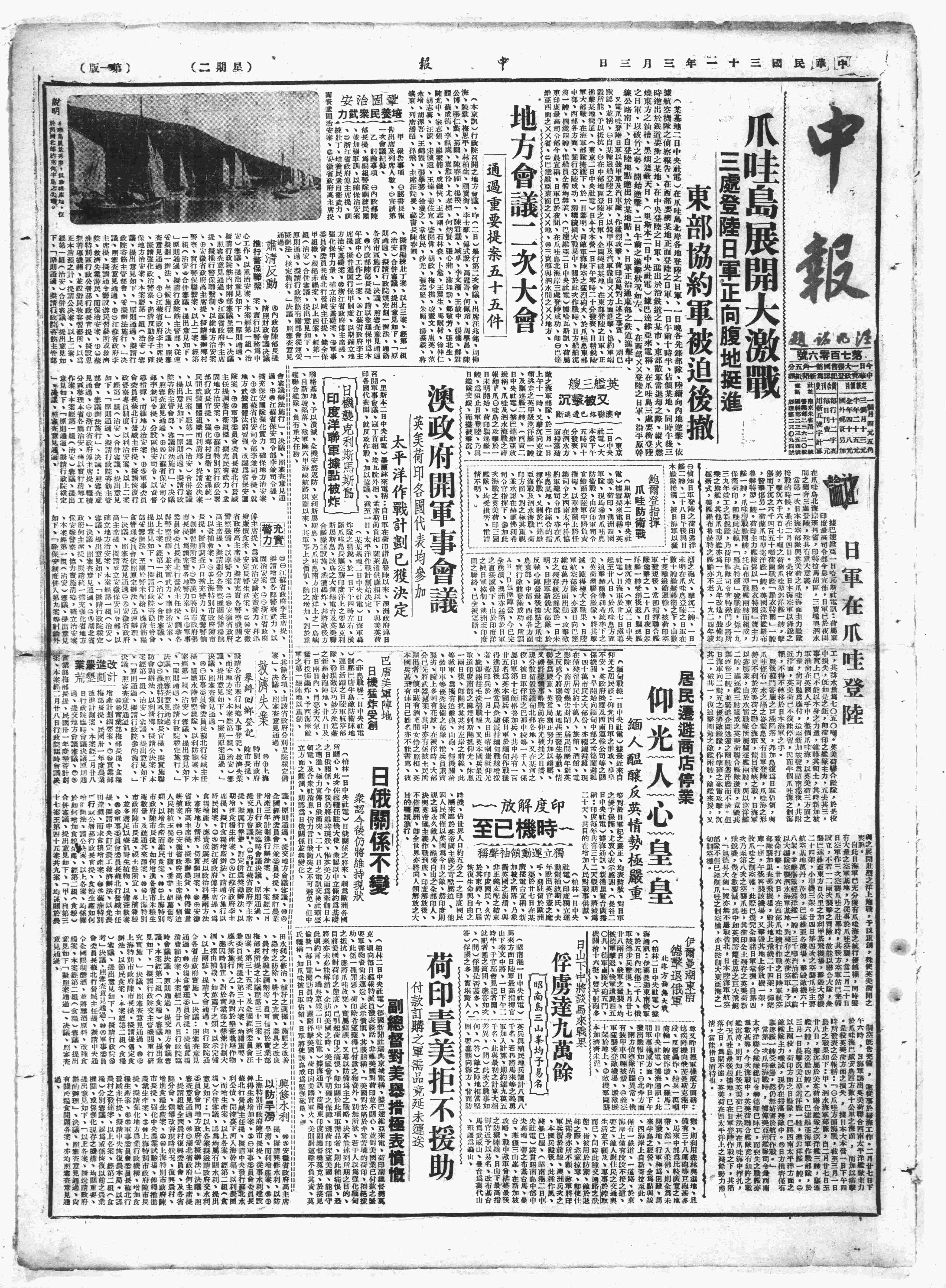 中华民国史大事记>19420303