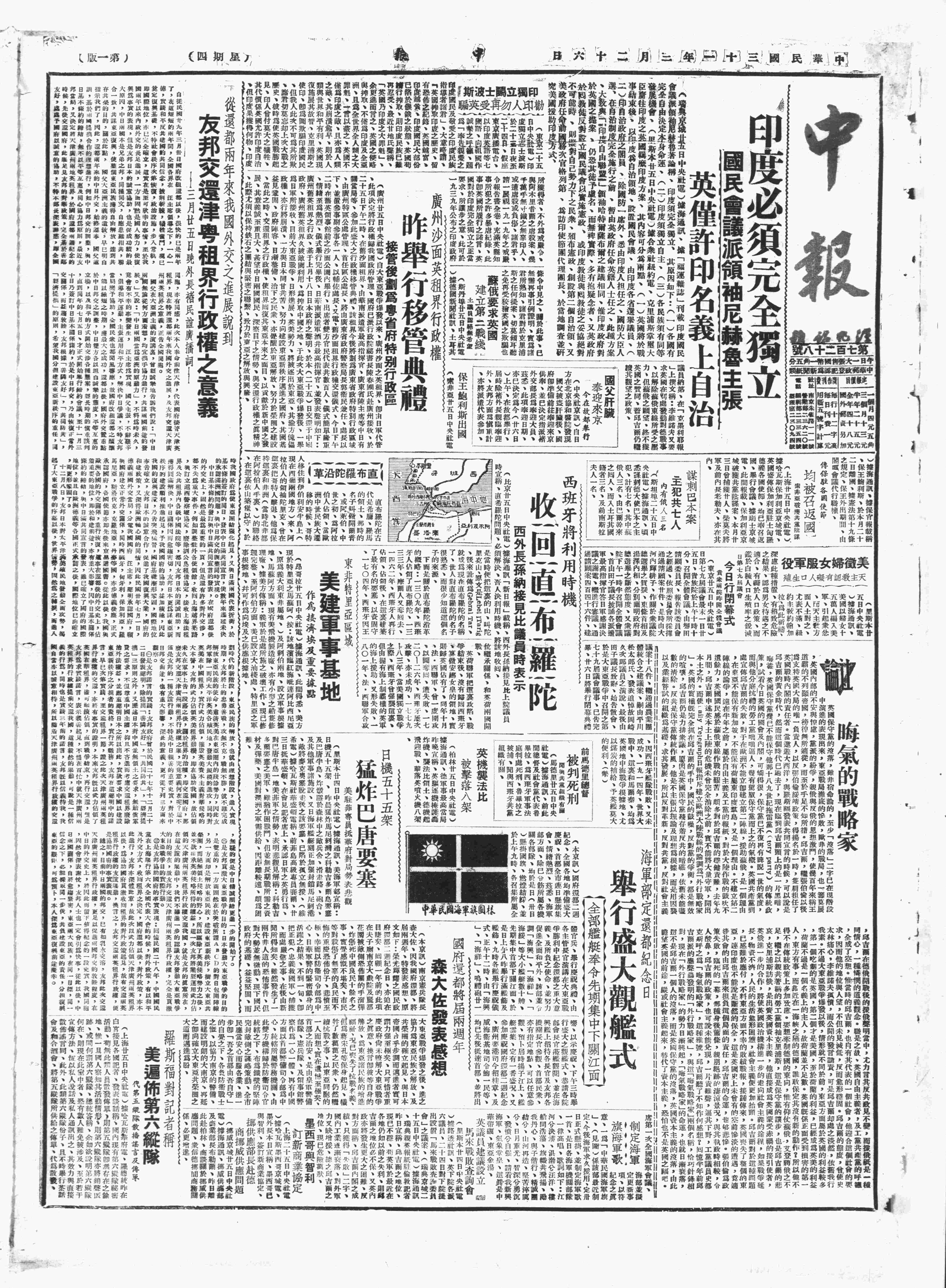 中华民国史大事记>19420326