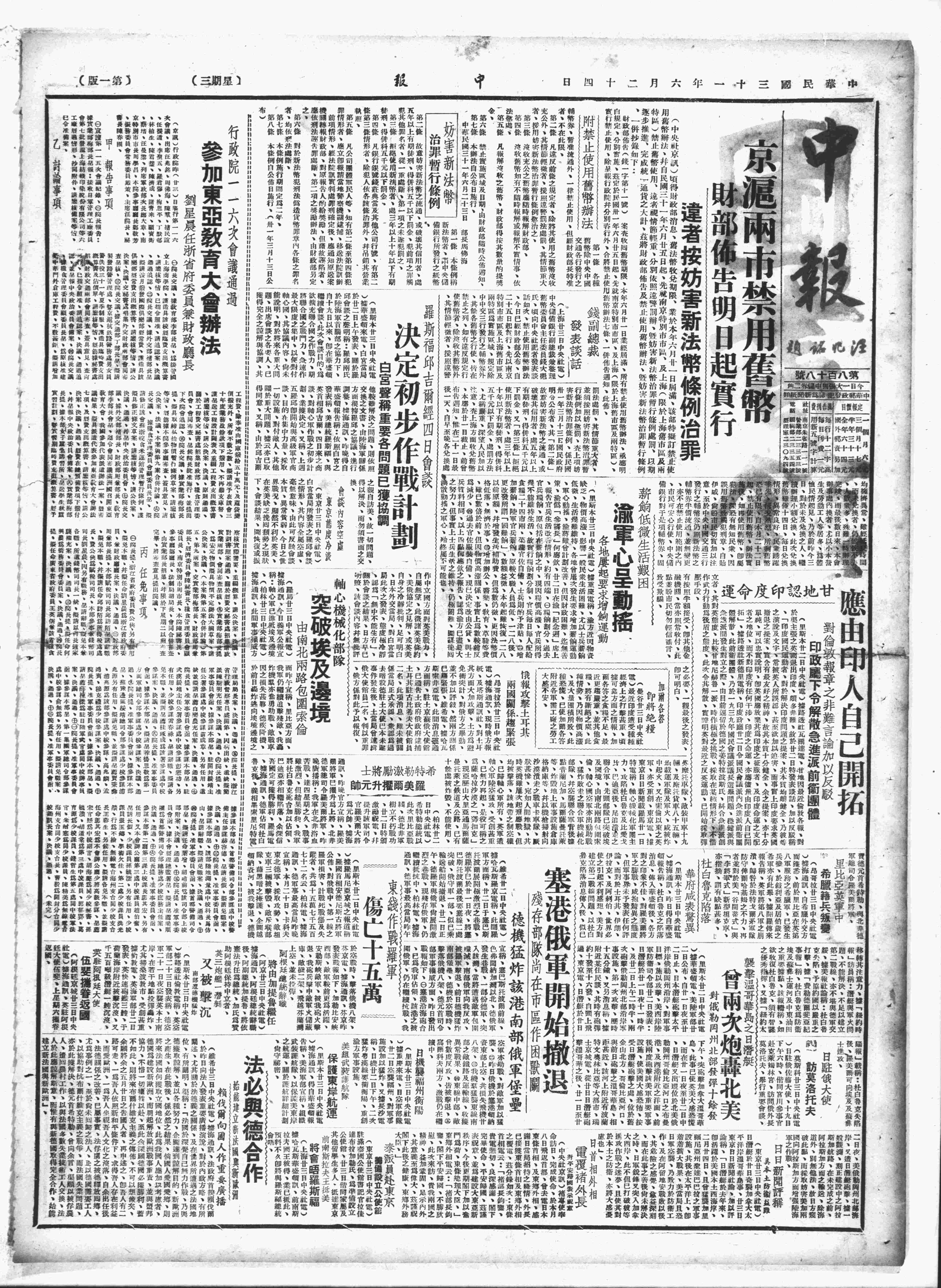 中华民国史大事记>19420624