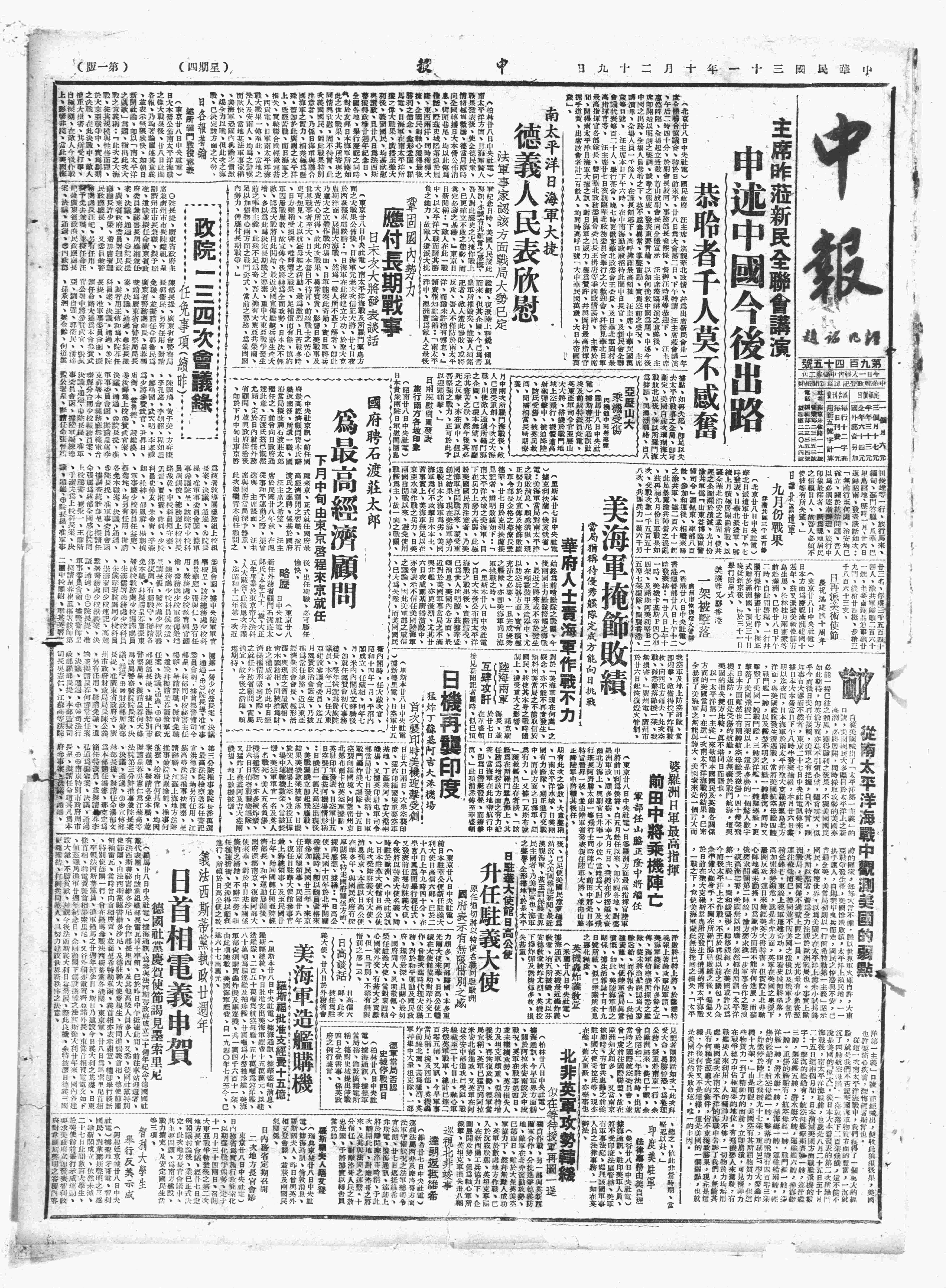 中华民国史大事记>19421029