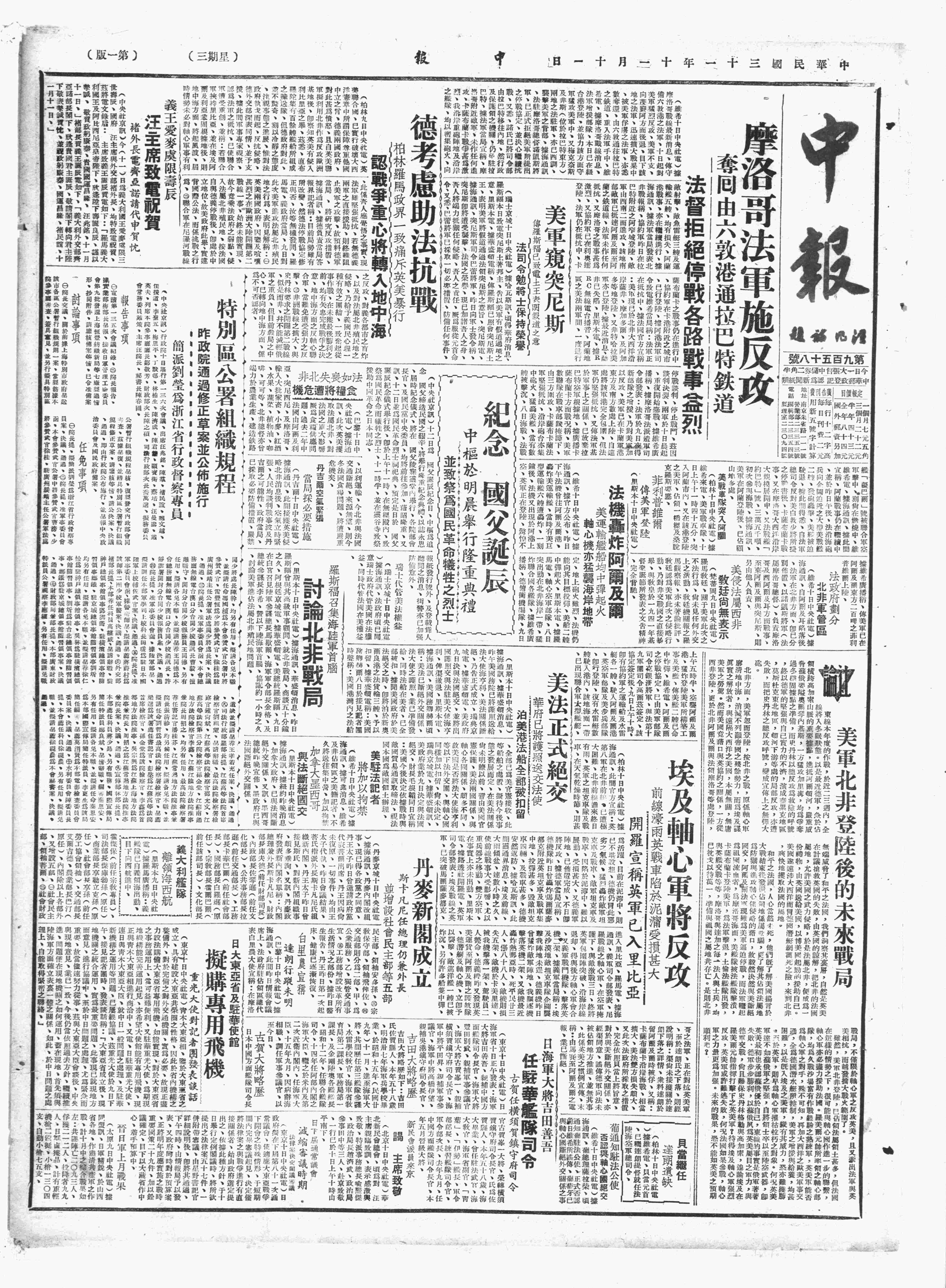 中华民国史大事记>19421111
