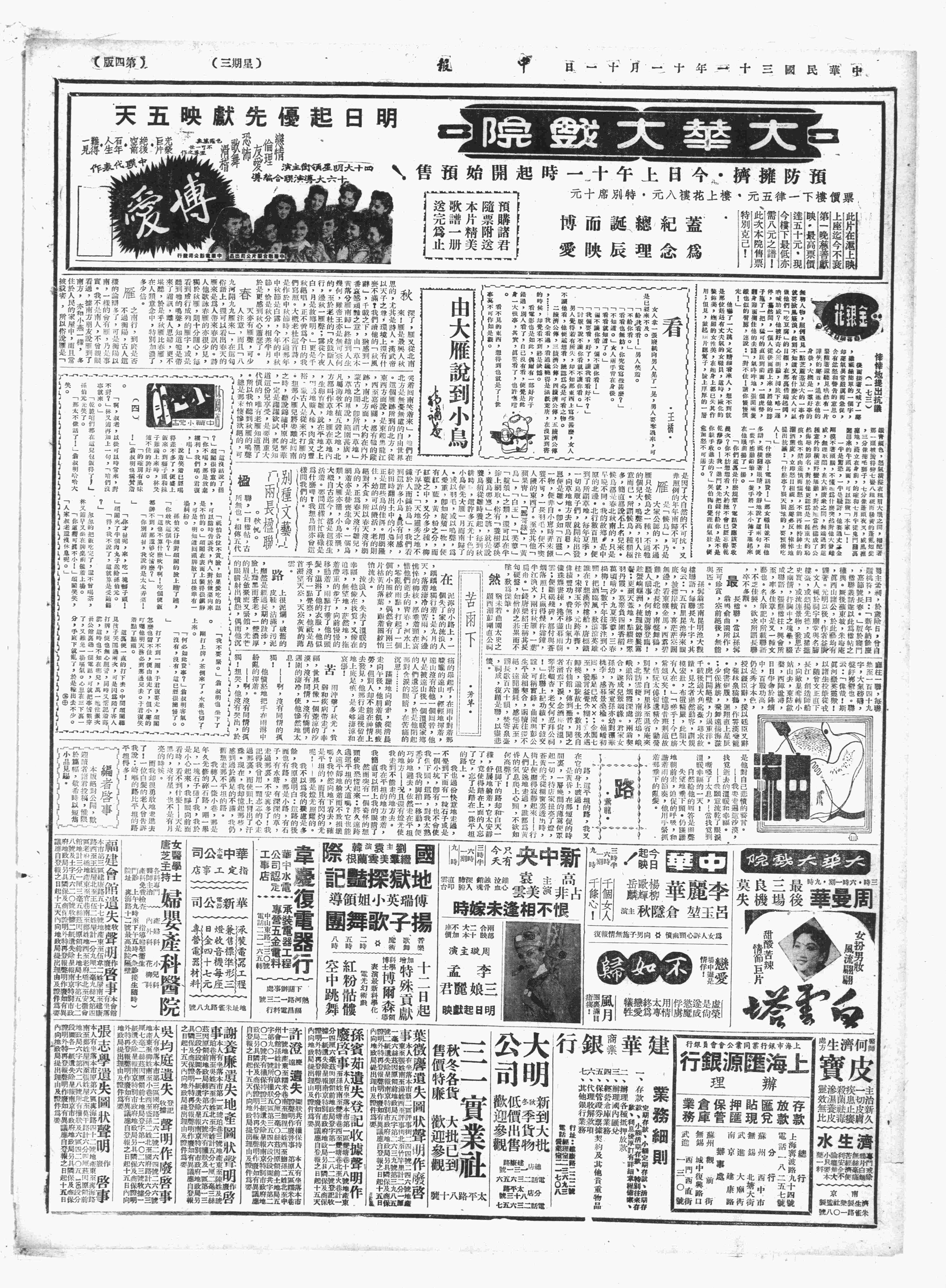 △ 重庆《中央日报》特讯称:复旦大学学生近因生活关系,多在重庆北碚附近兼任其他职务,学校当局严加取缔,并令自即日起至12月1日止办理登记,由校方审核,如不登记或未经核准而仍在校外兼职者,一经查出,立即开除。