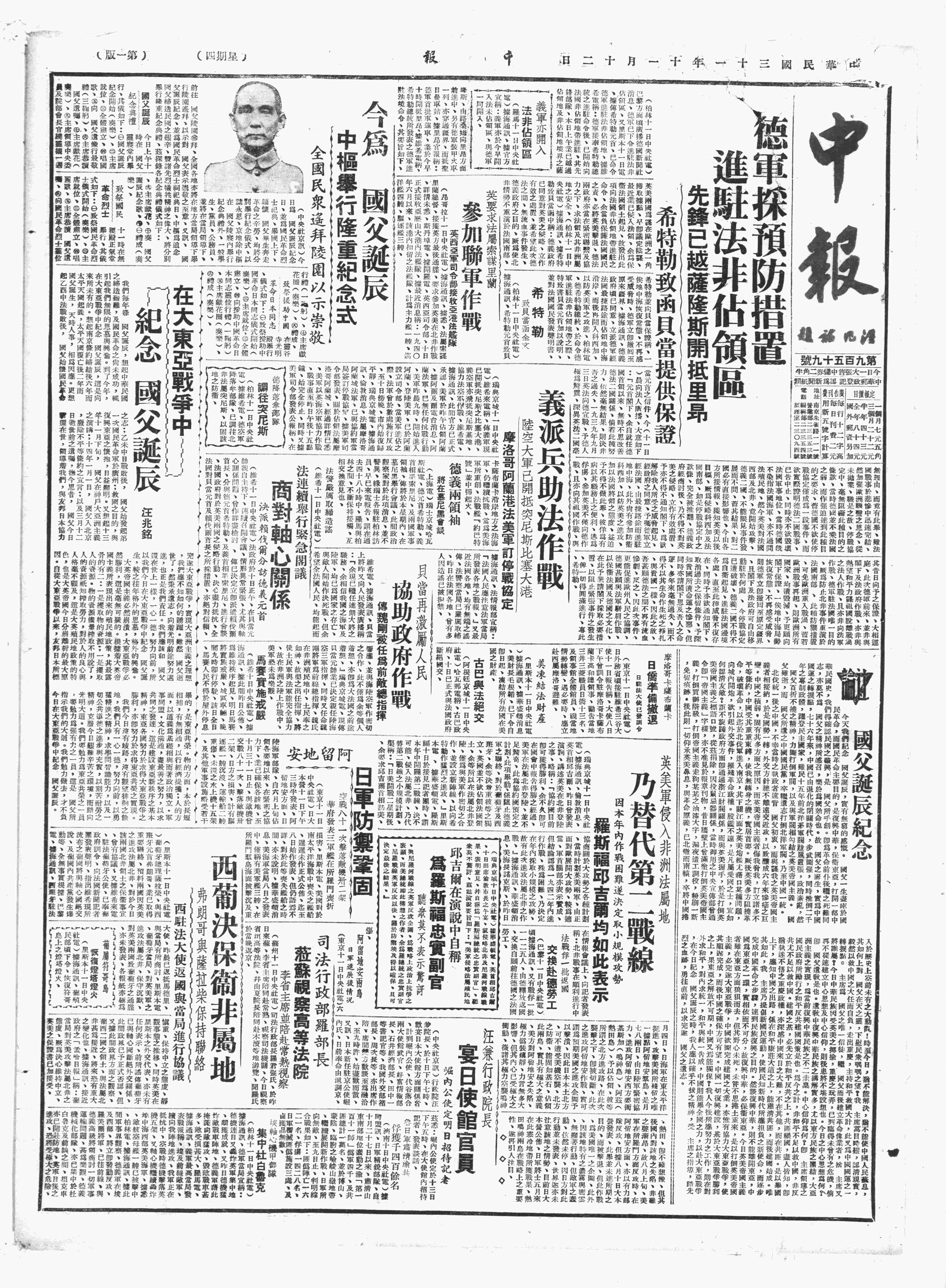 中华民国史大事记>19421112