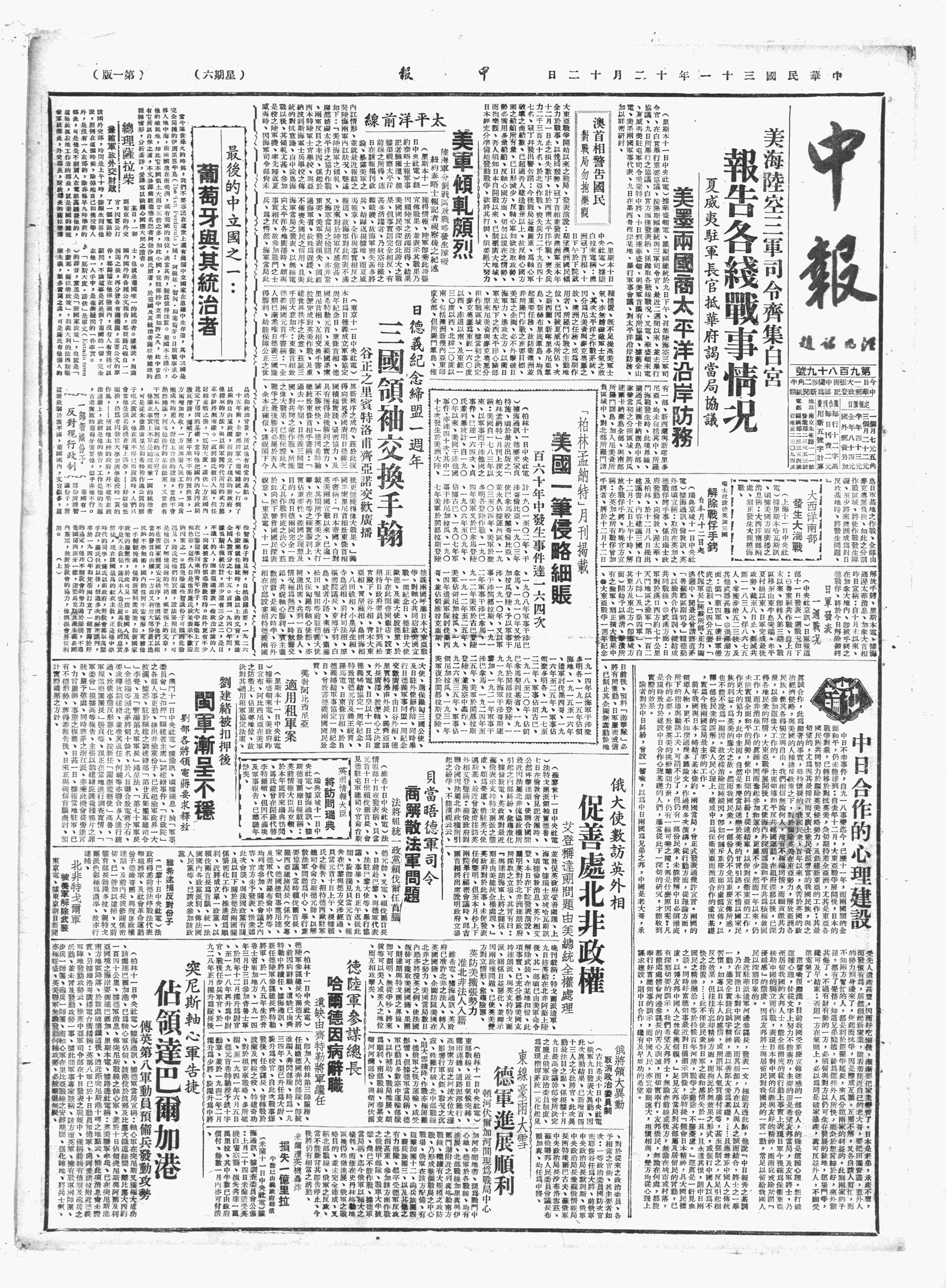 中华民国史大事记>19421212