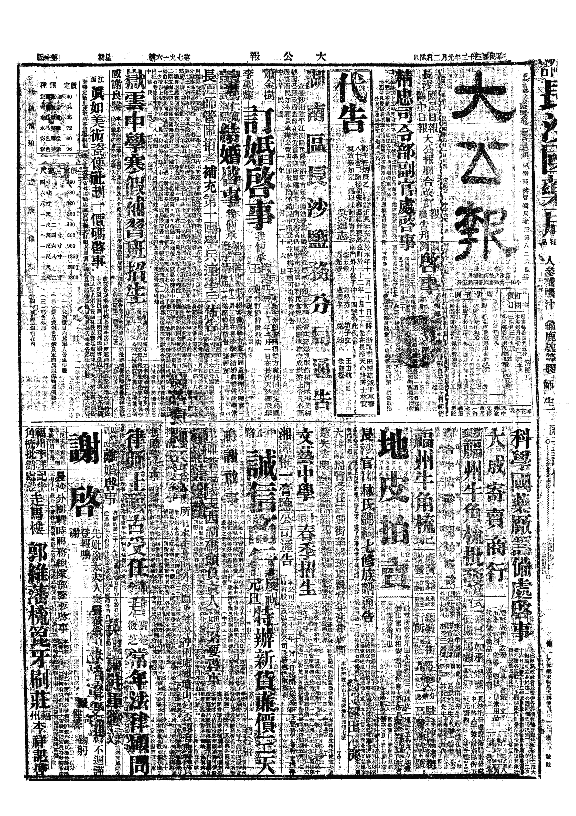 省教育厅长朱经农在《国民日报》发表“一年来湖南教育之检讨”称:全省有中等学校279所,普通中学171所,师范学校49所,职业学校49所,专业学校10所。