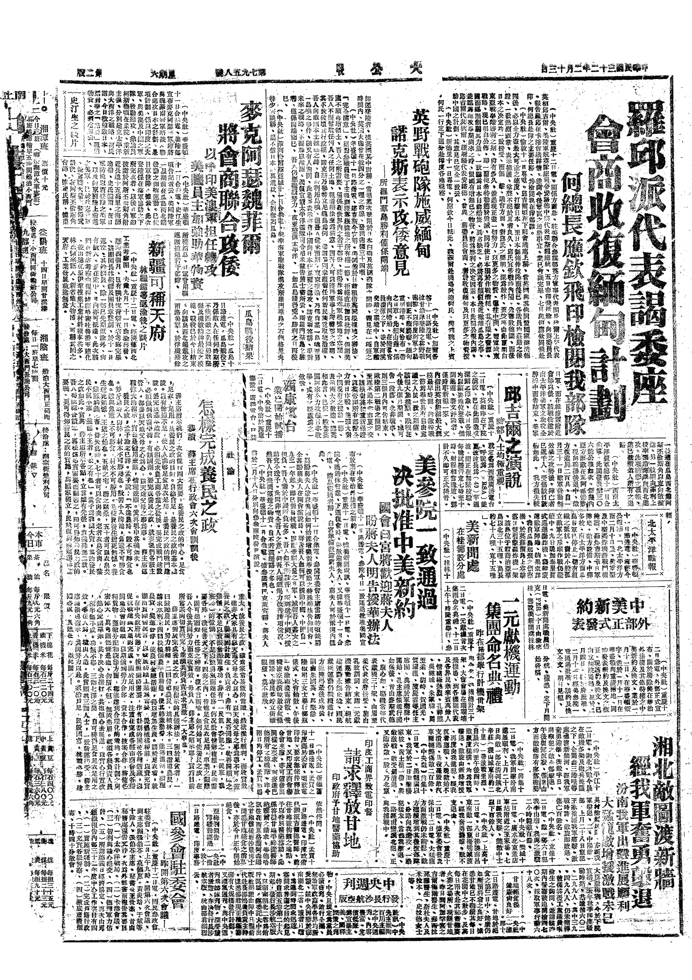中华民国史大事记>19430213