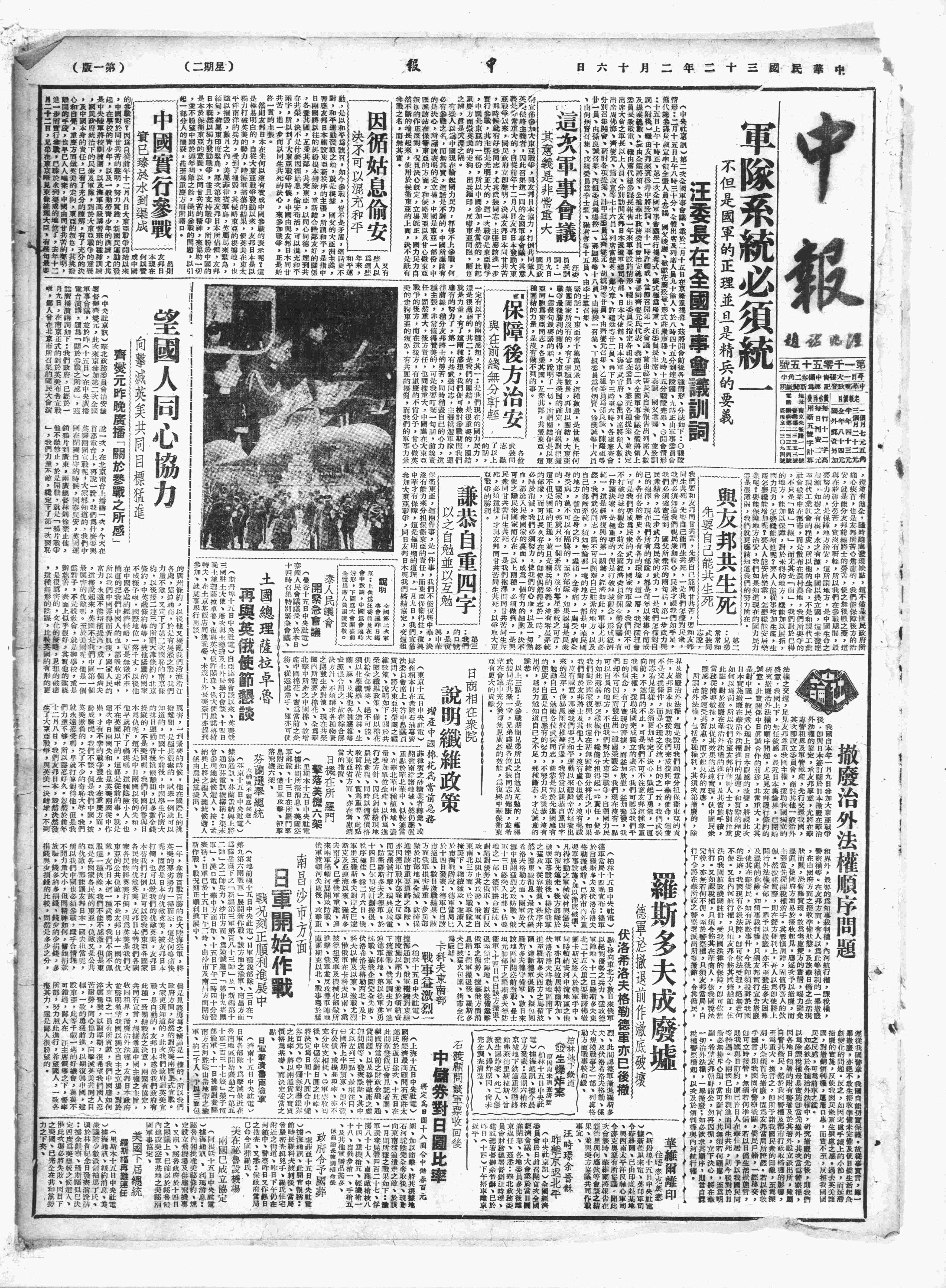 中华民国史大事记>19430216