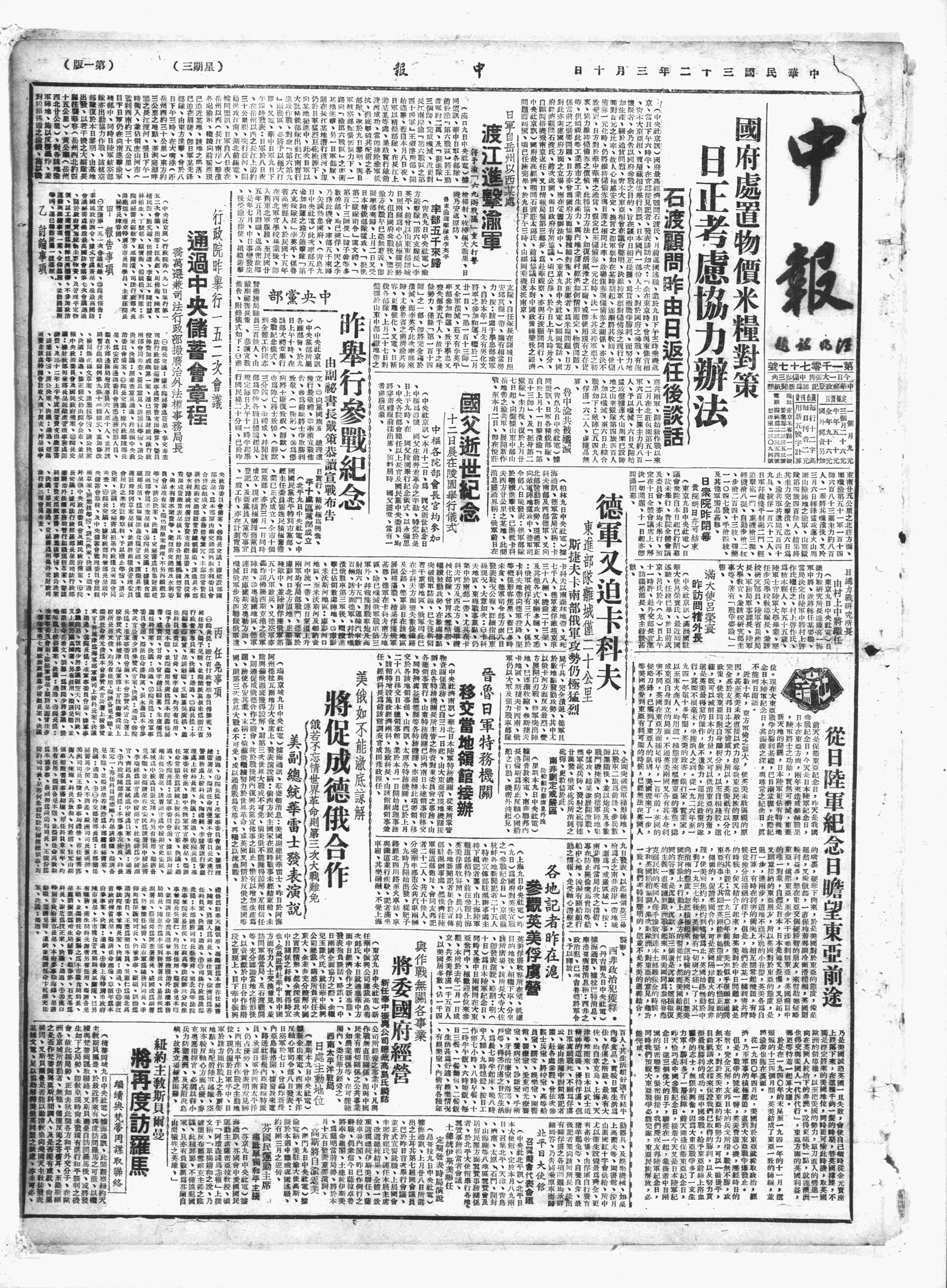 中华民国史大事记>19430310