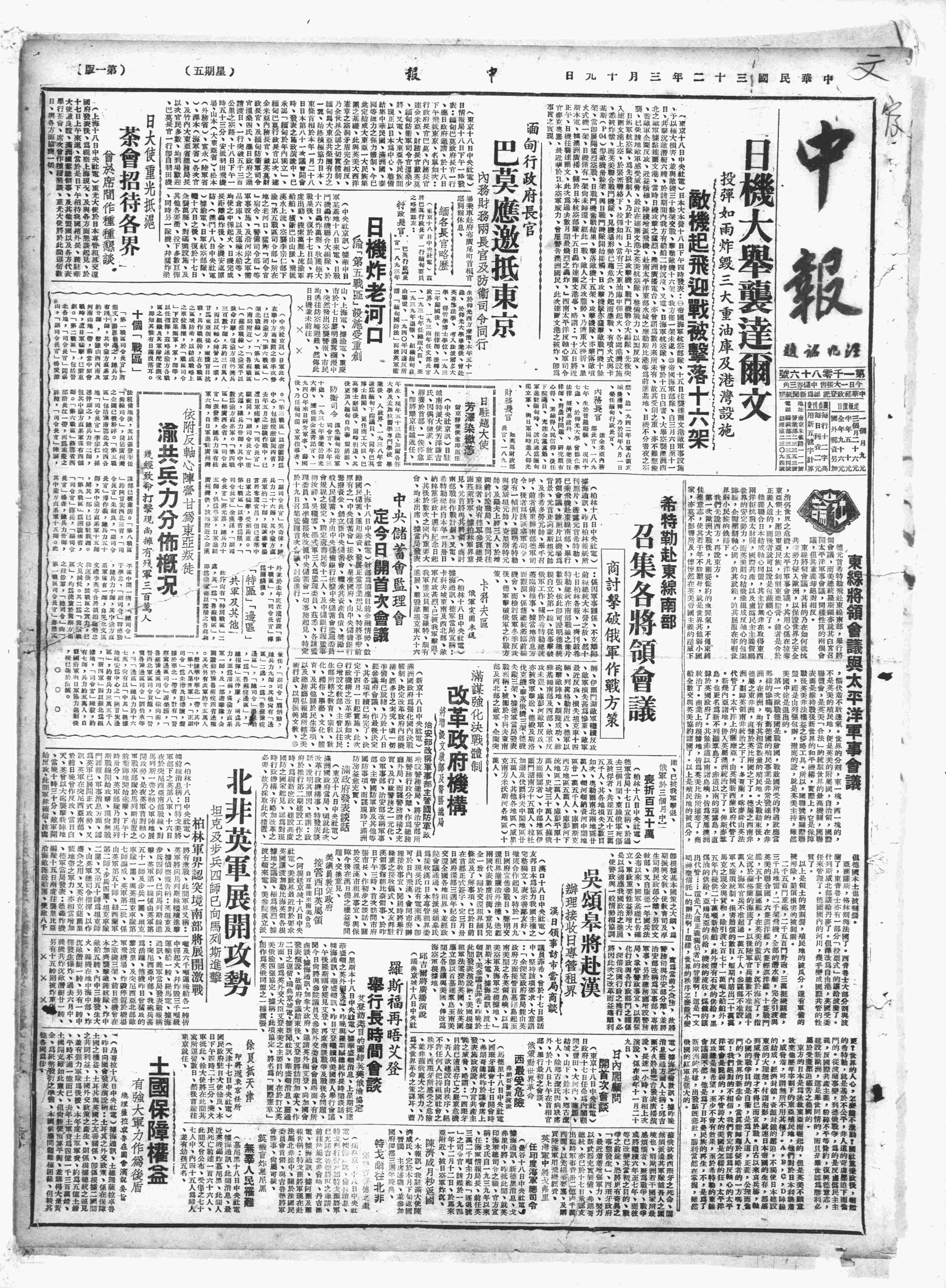 中华民国史大事记>19430319