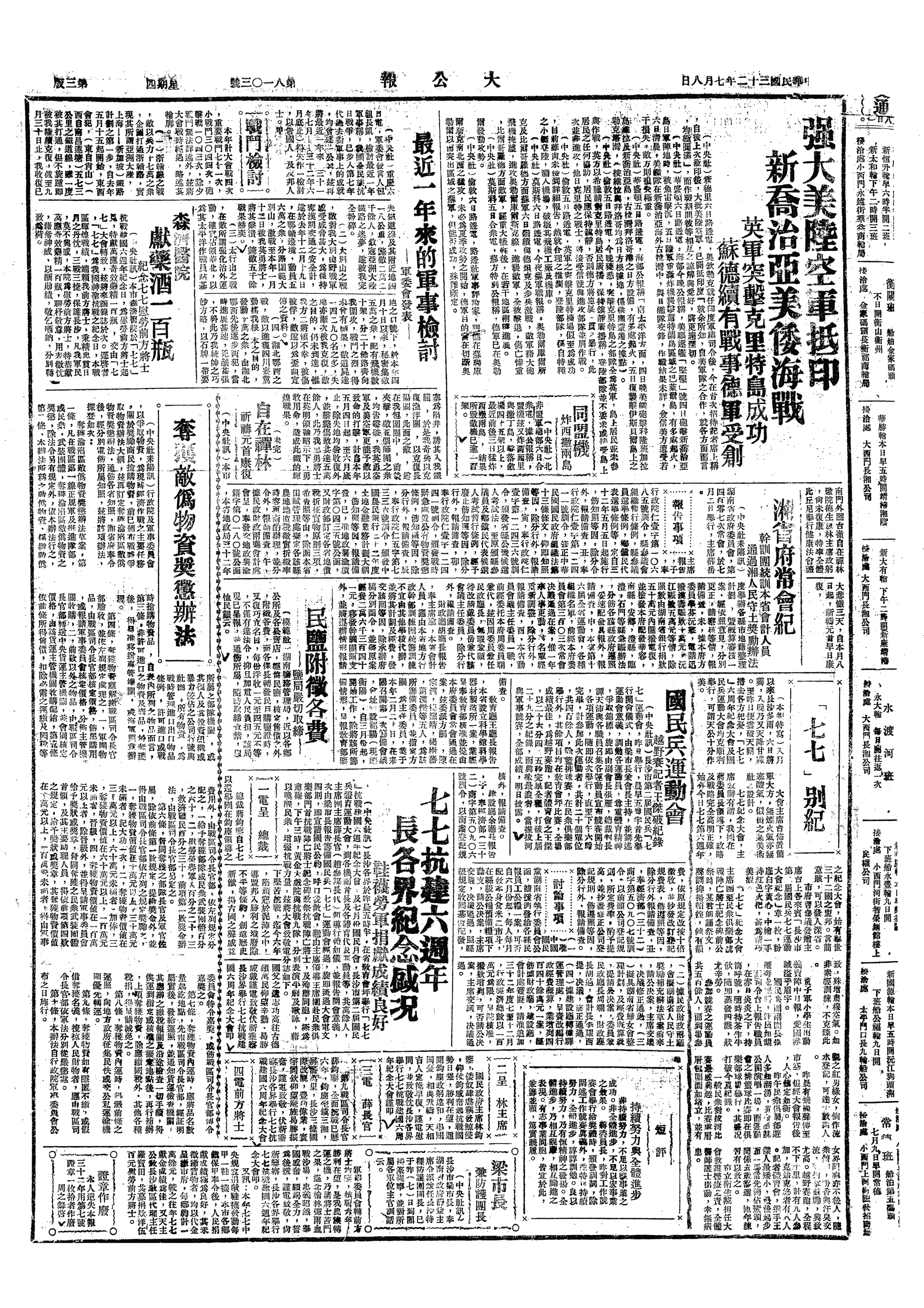 中华民国史大事记>19430708