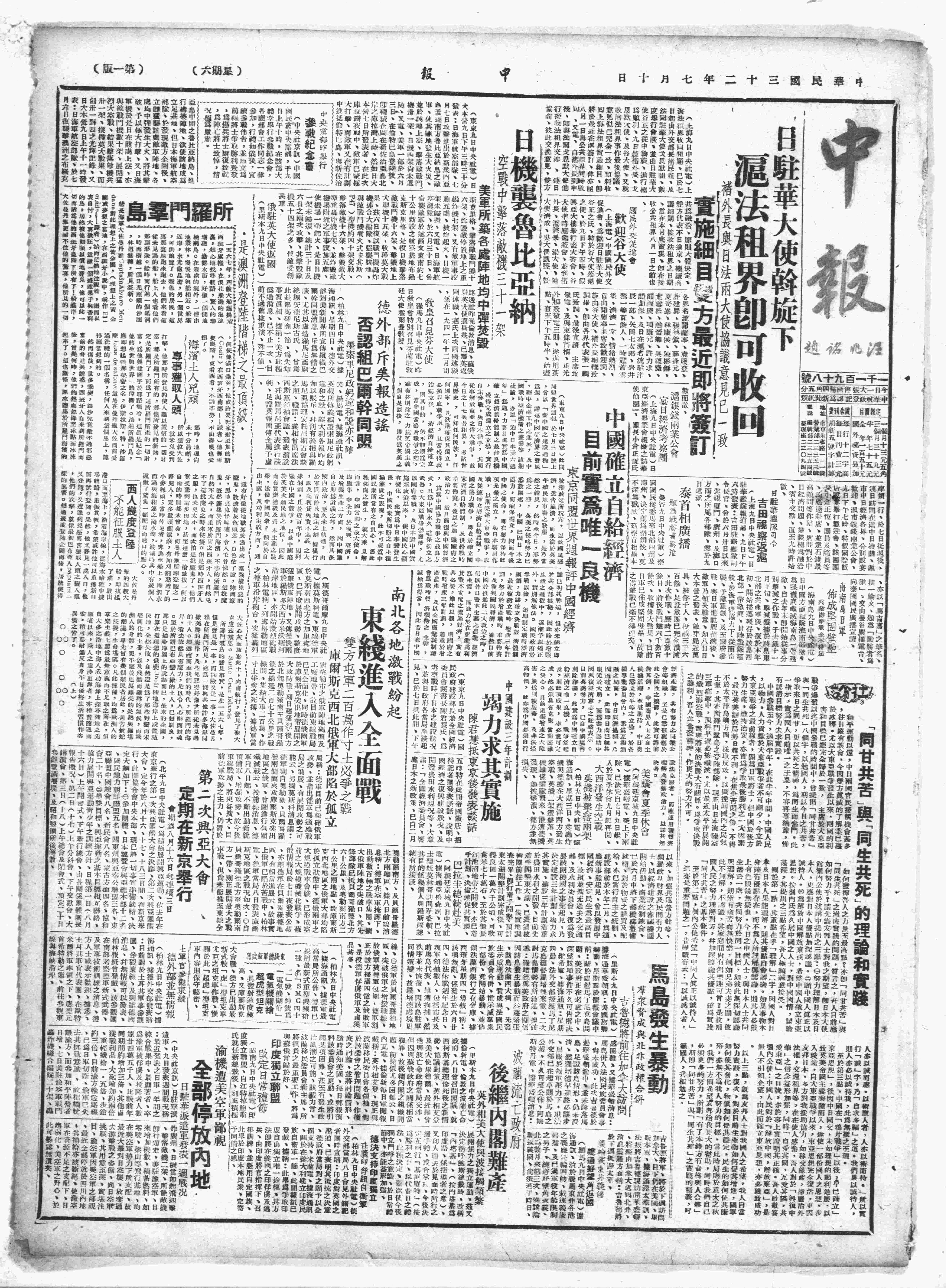 中华民国史大事记>19430710