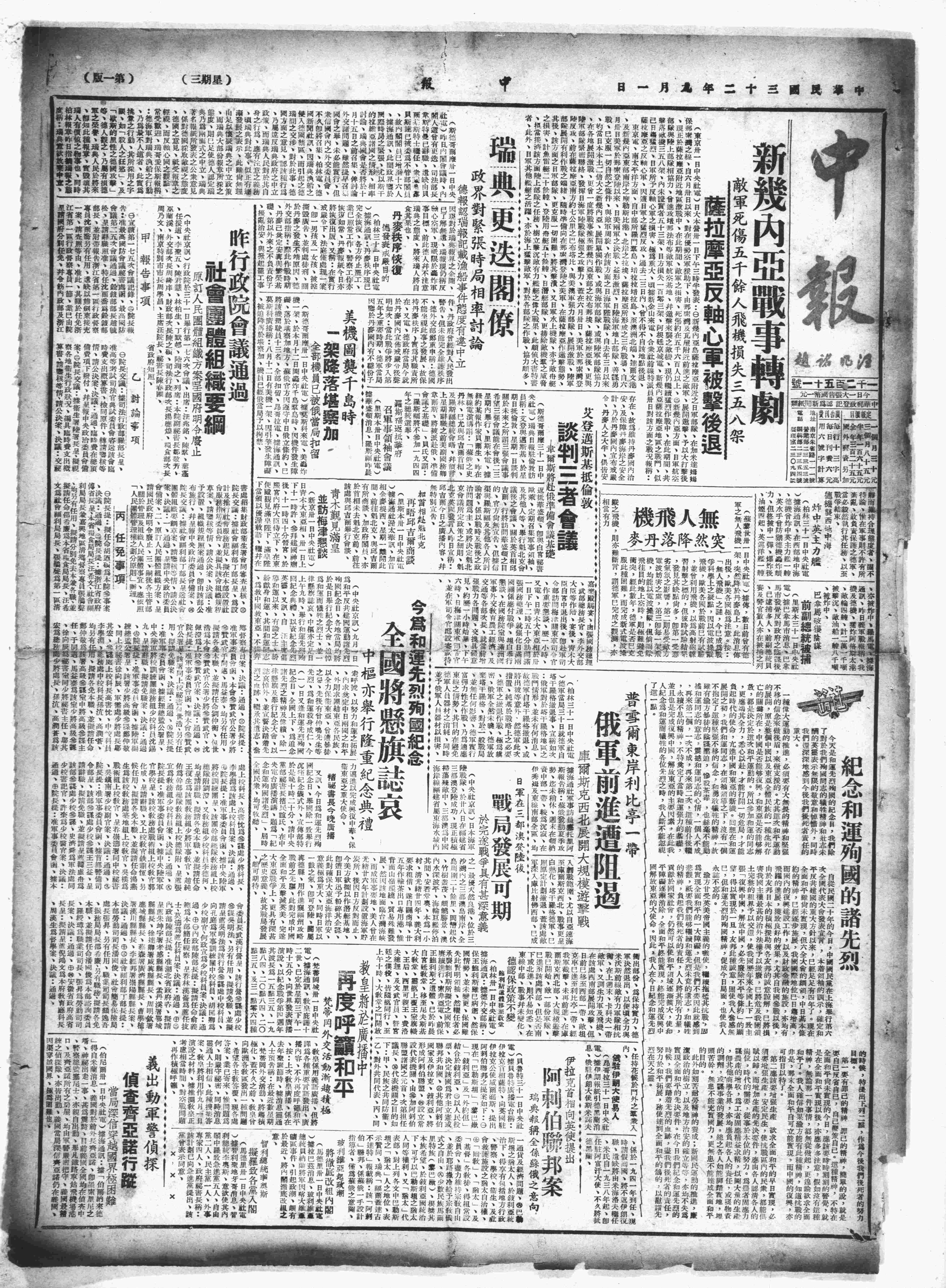 中华民国史大事记>19430901