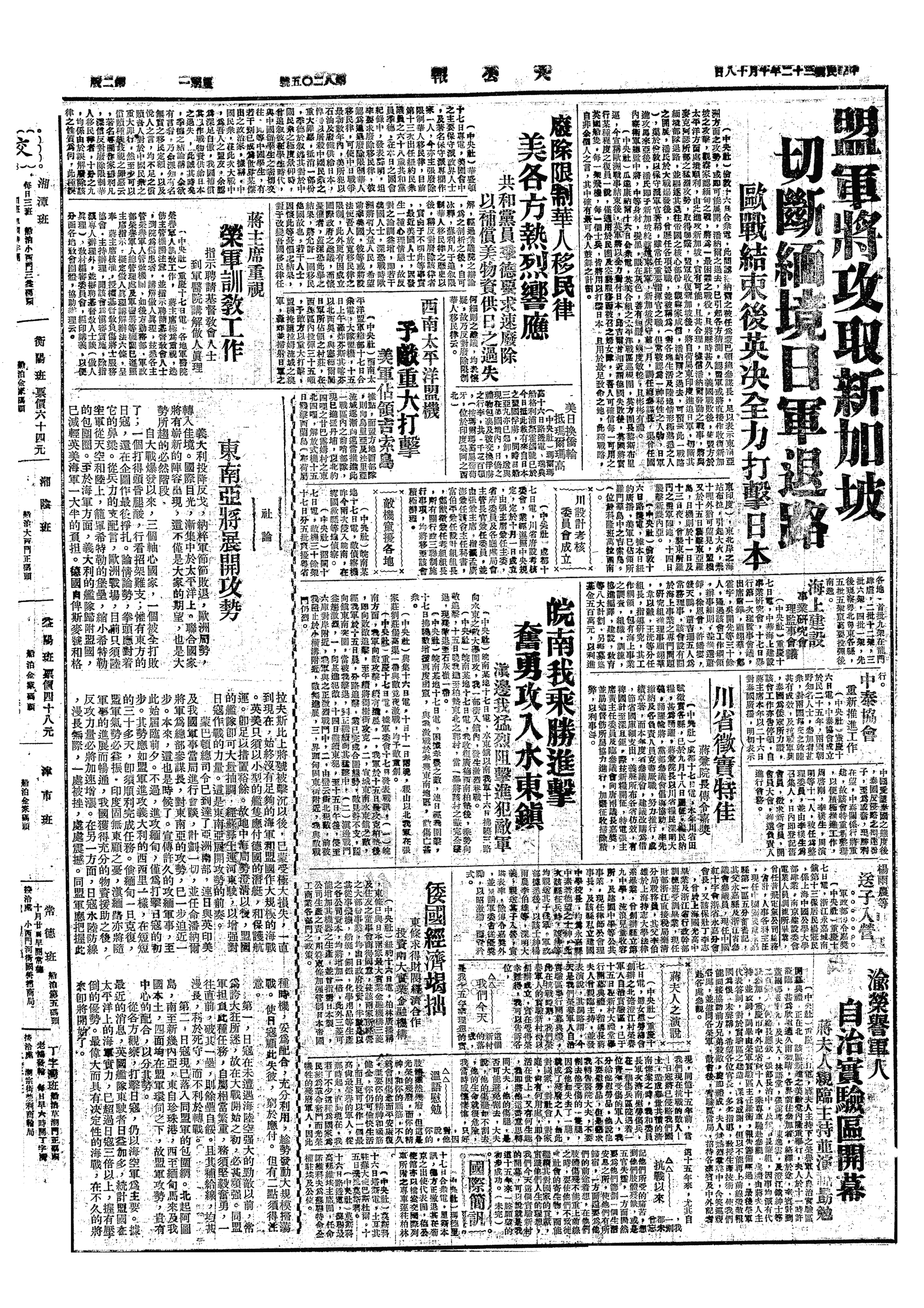 中华民国史大事记>19431018
