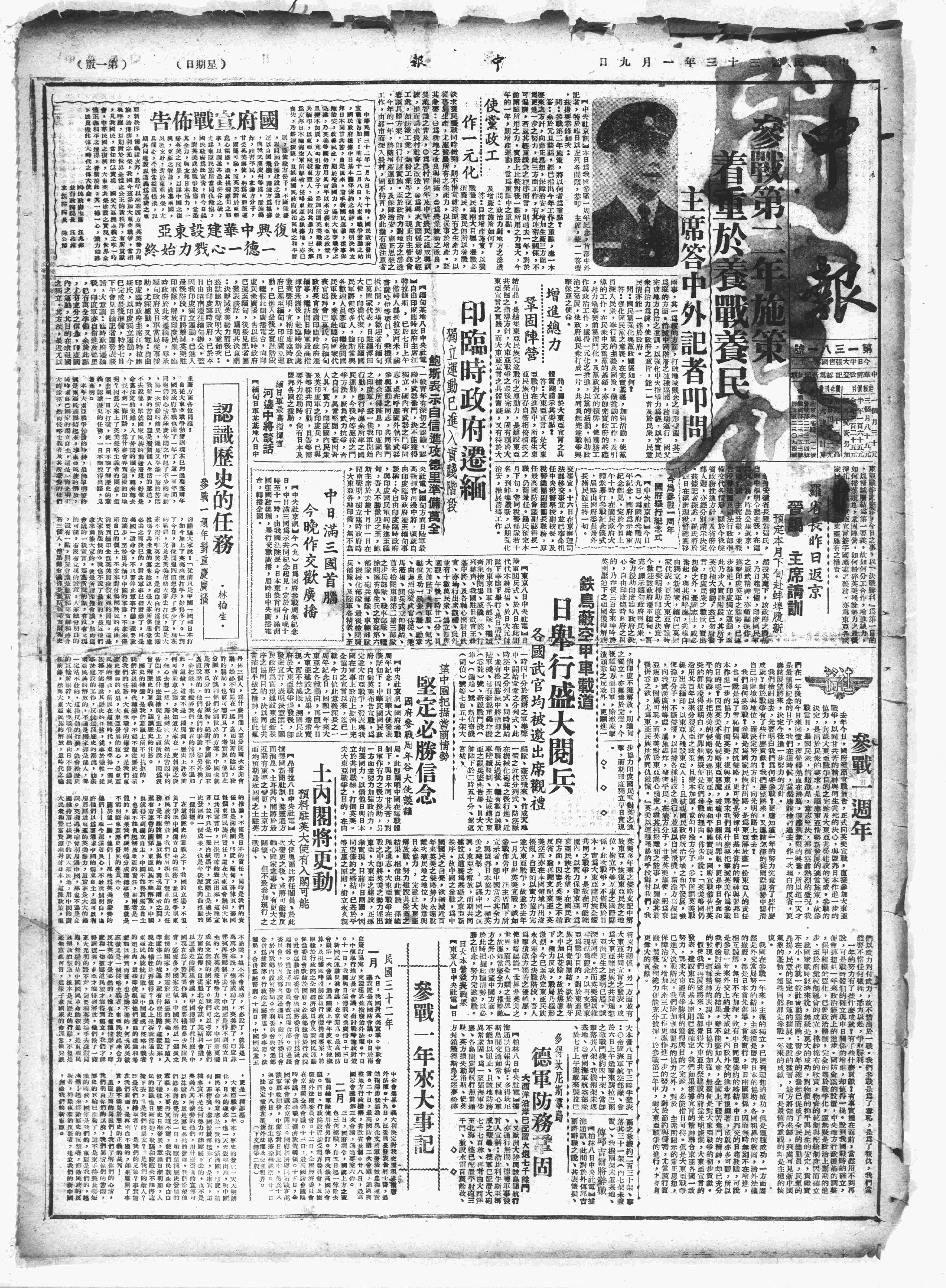 中华民国史大事记>19440109