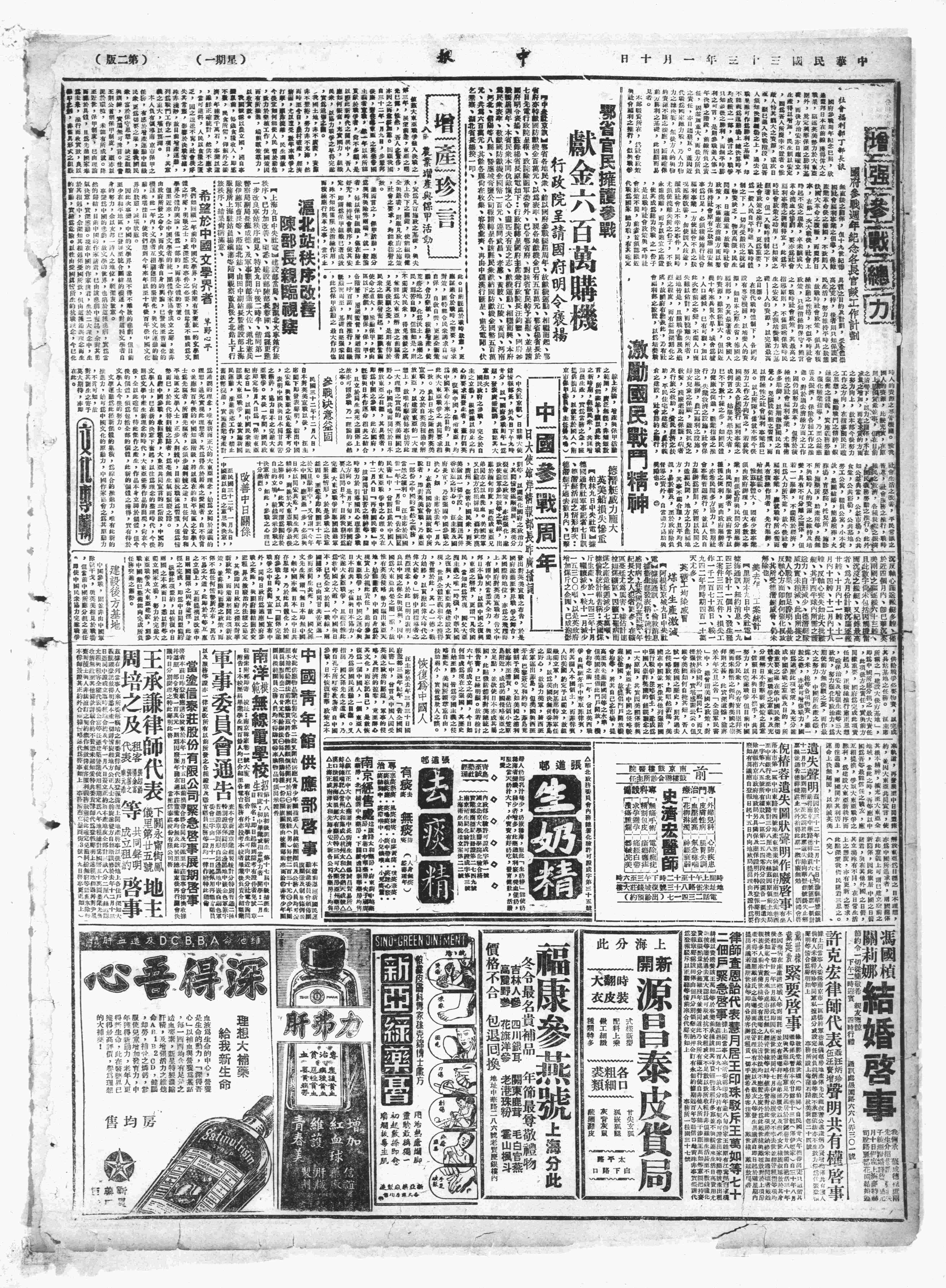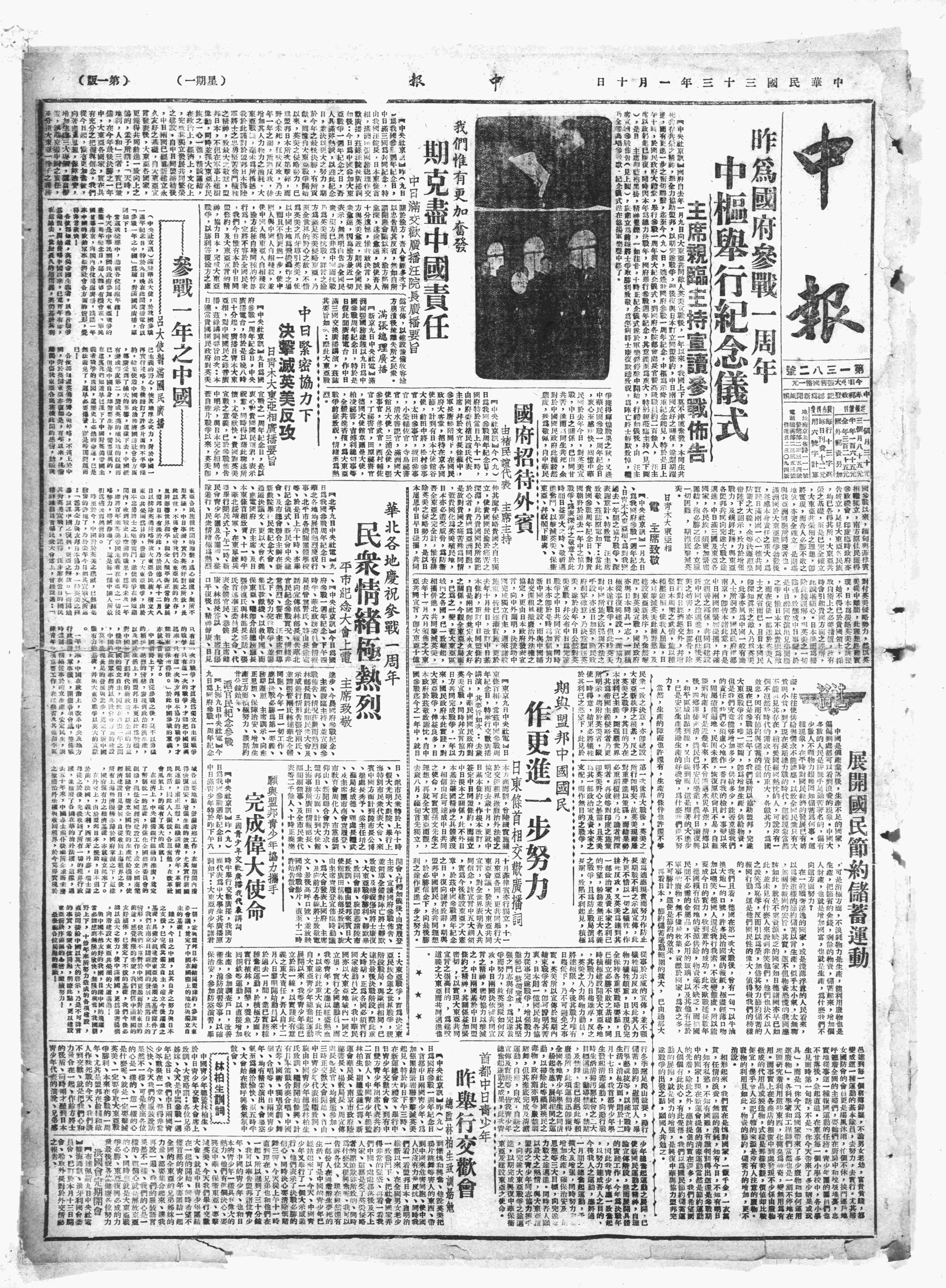 中华民国史大事记>19440110