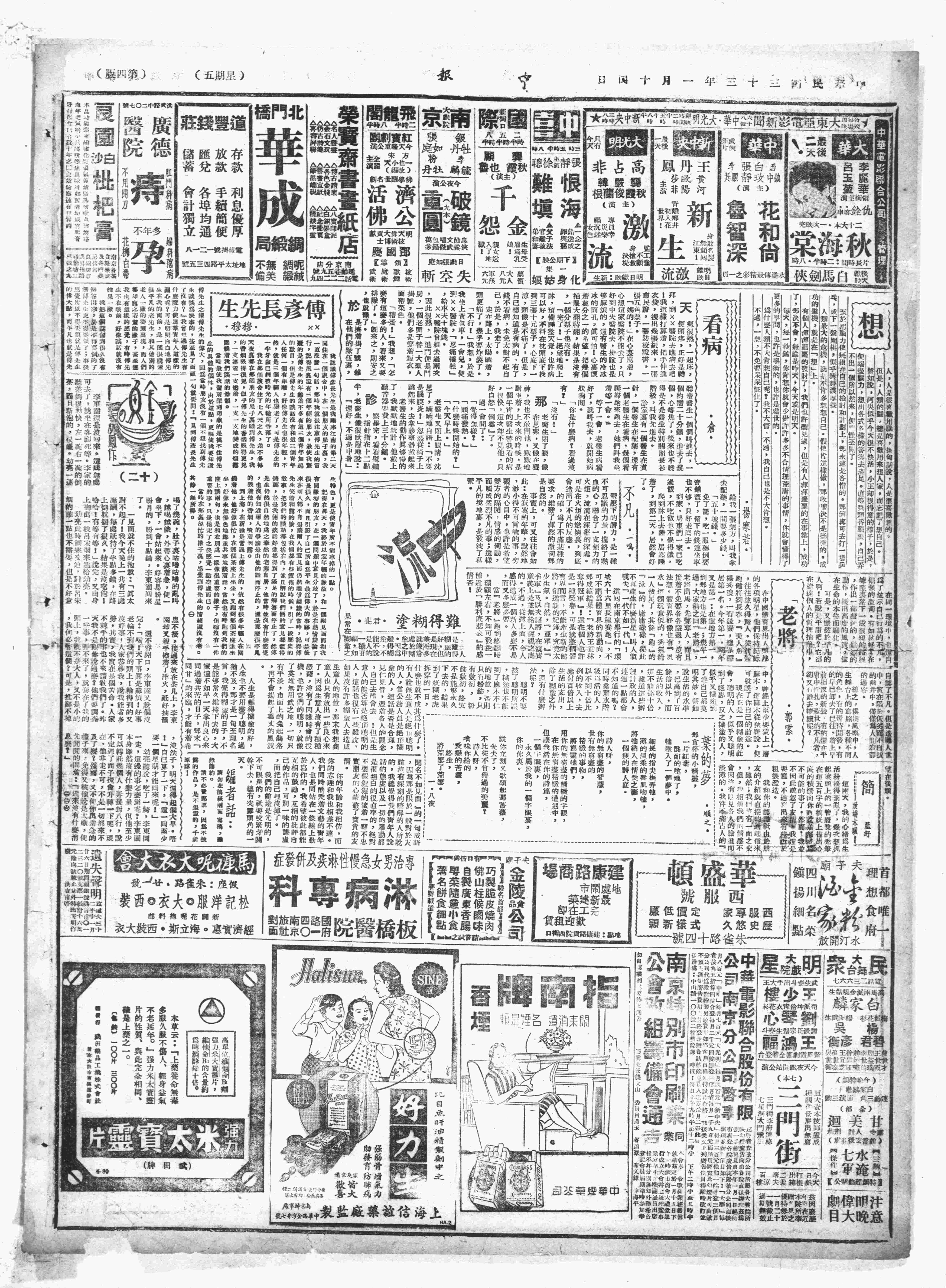上午由化龙桥赴重庆连日未治疗,疾又加重,即赴刘典文医生处注射。下午至聚贤处,为其书联一条云: