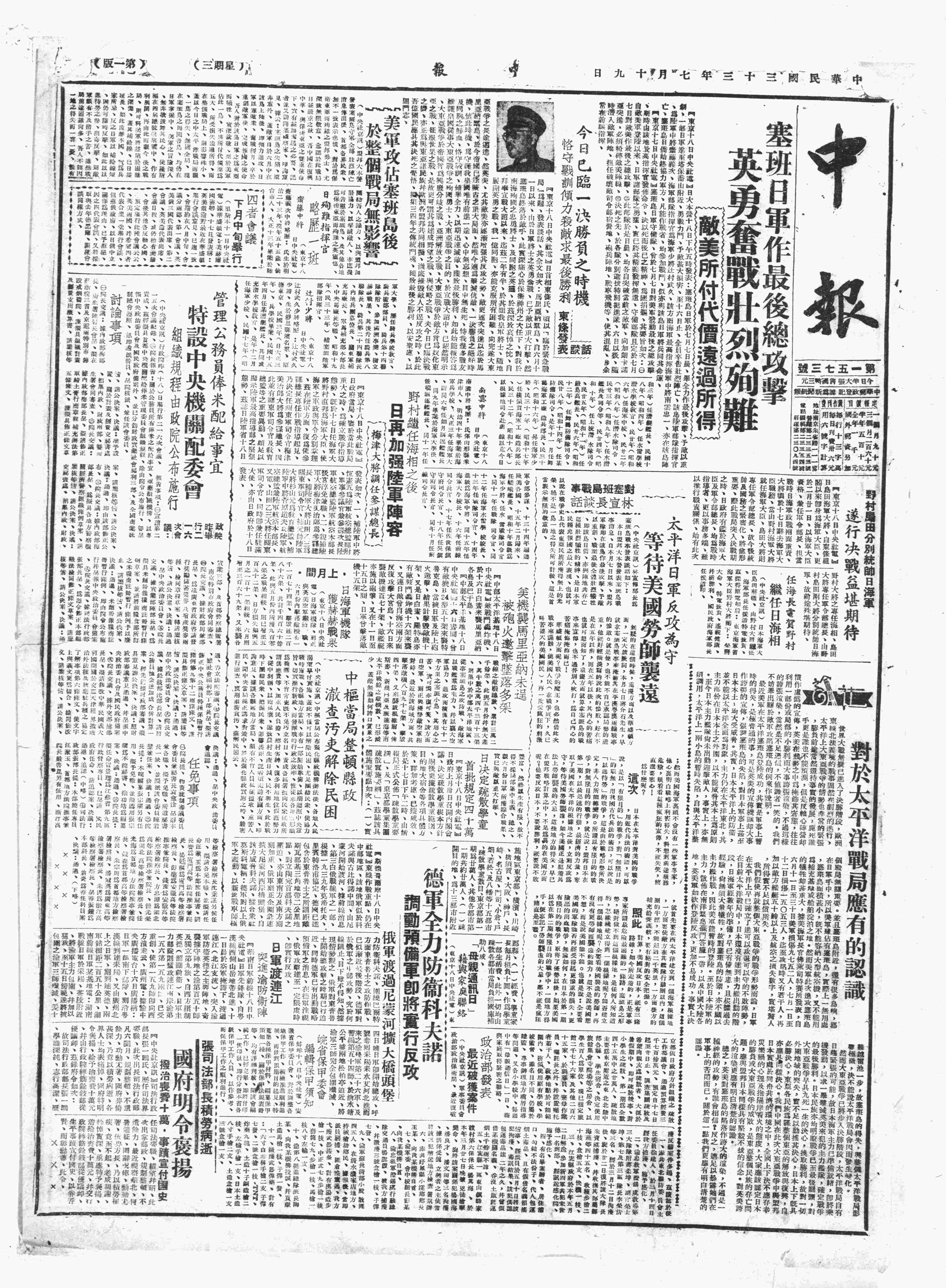 中华民国史大事记>19440719
