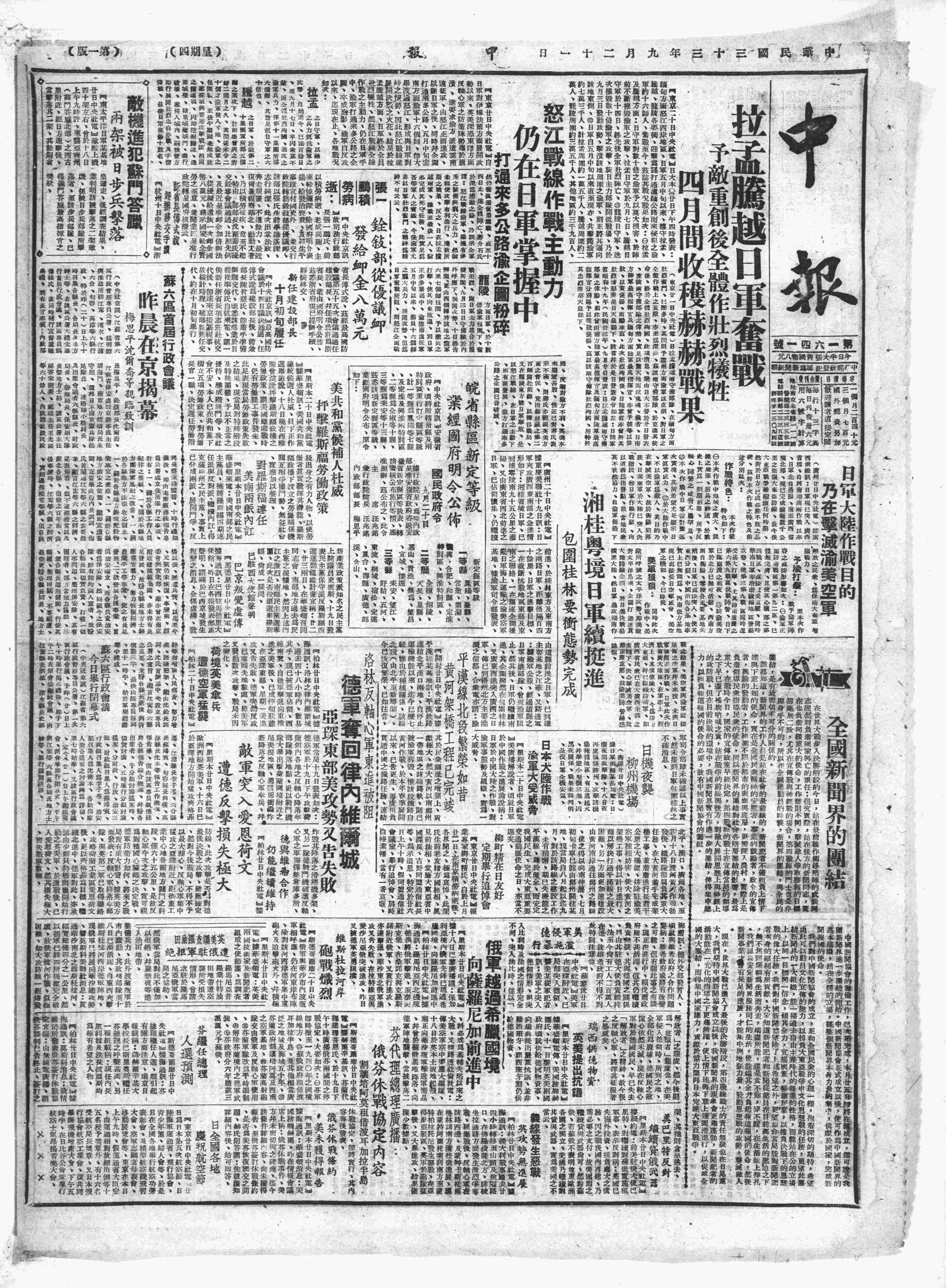 中华民国史大事记>19440921