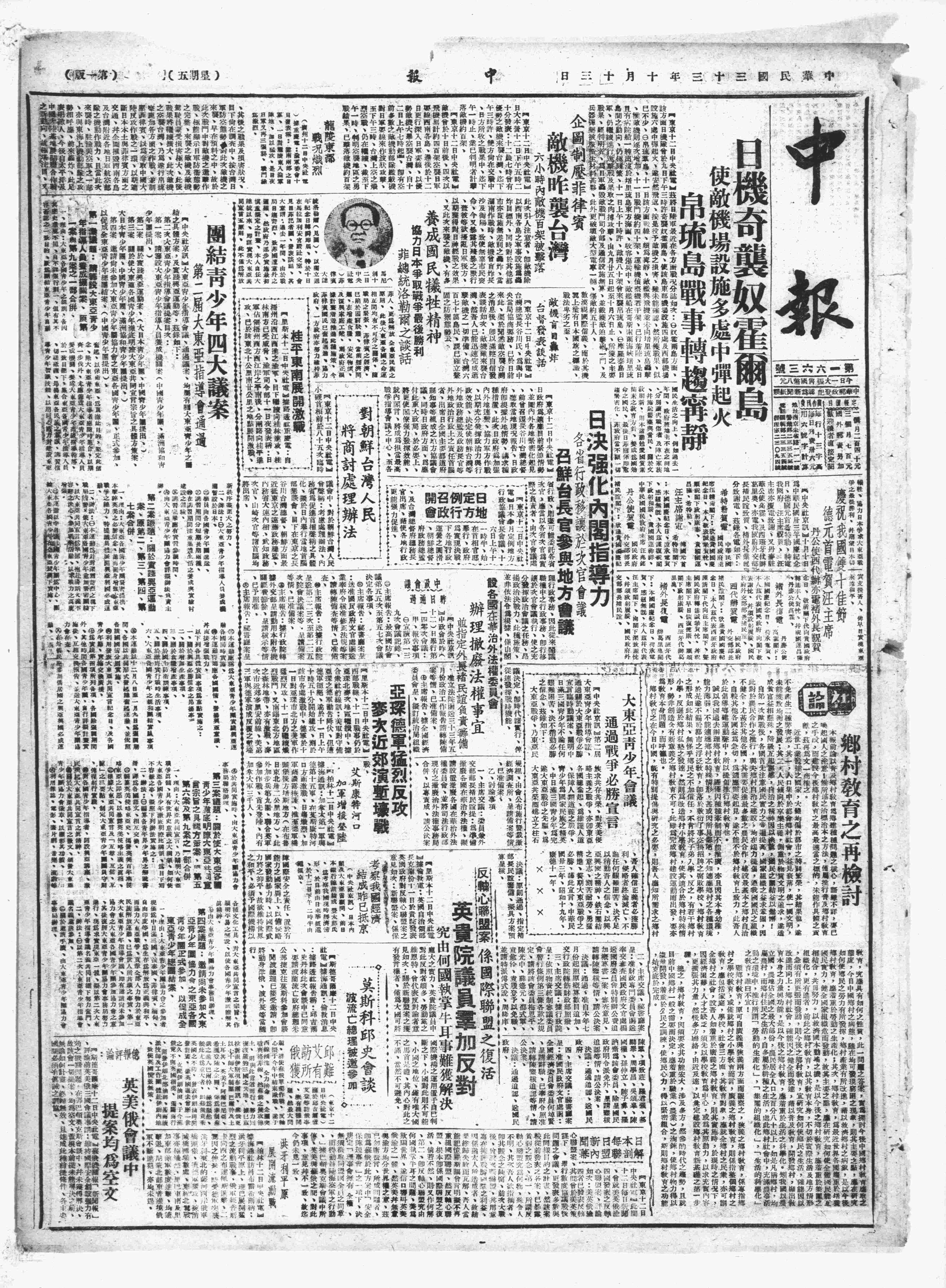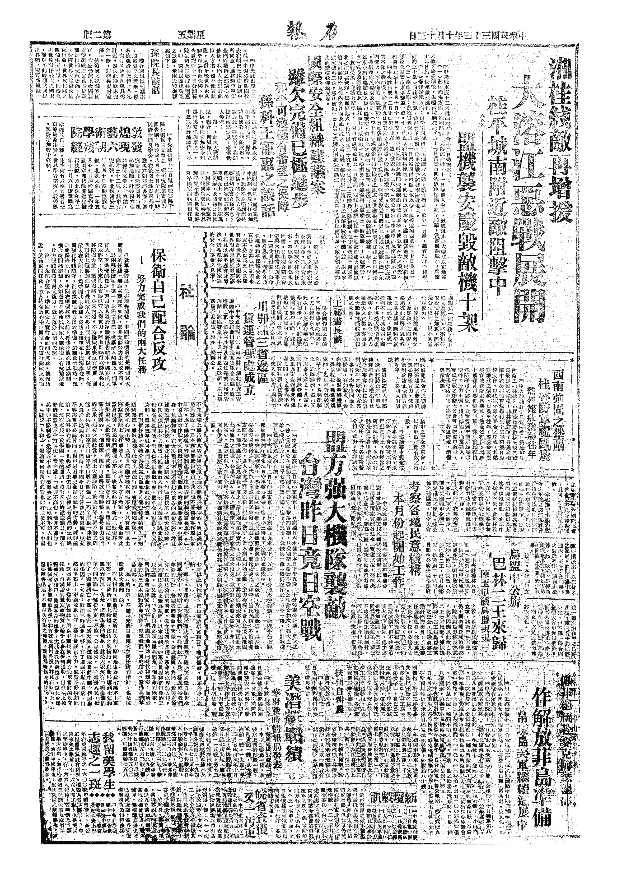 中华民国史大事记>19441013