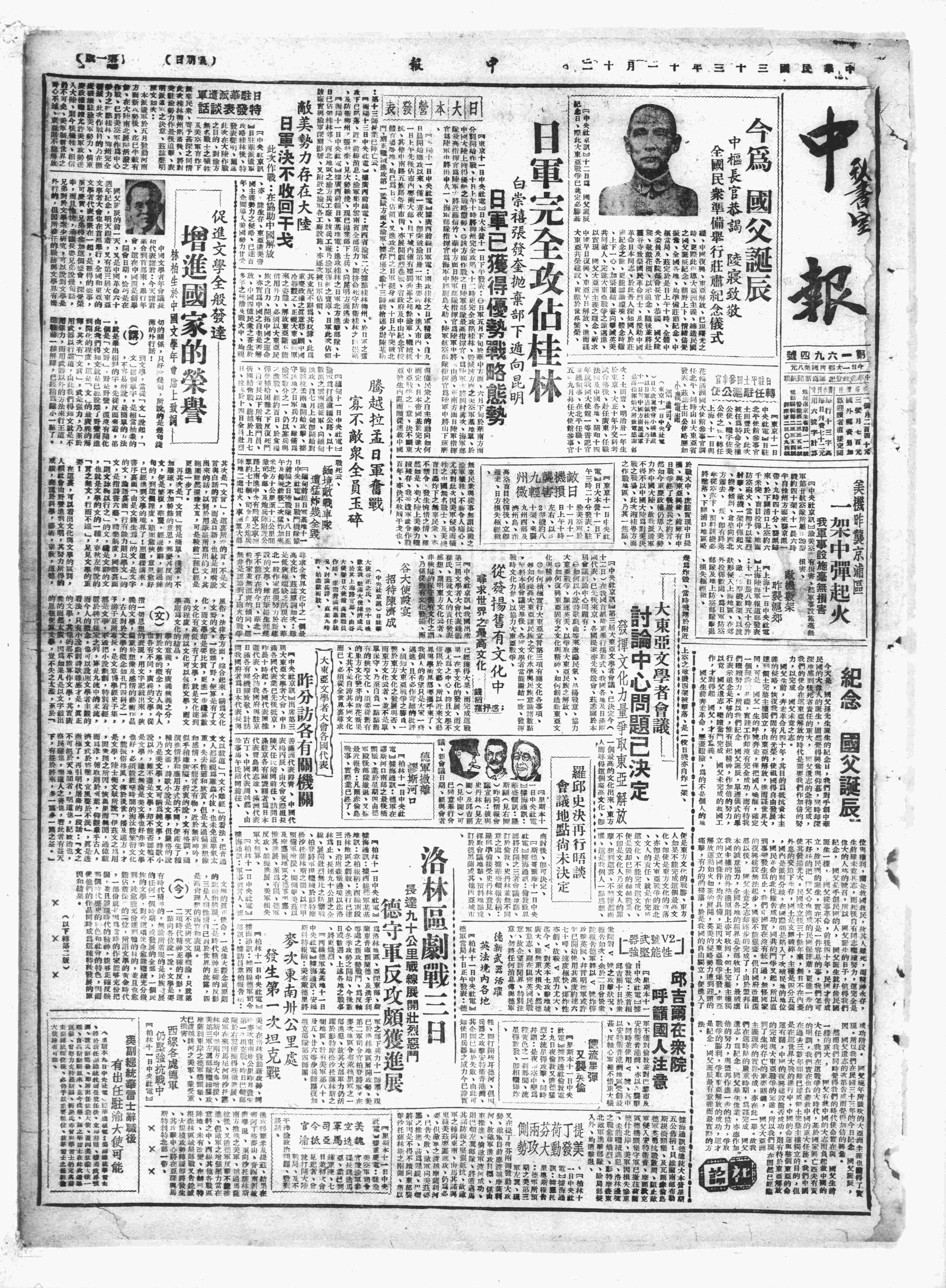 中华民国史大事记>19441112