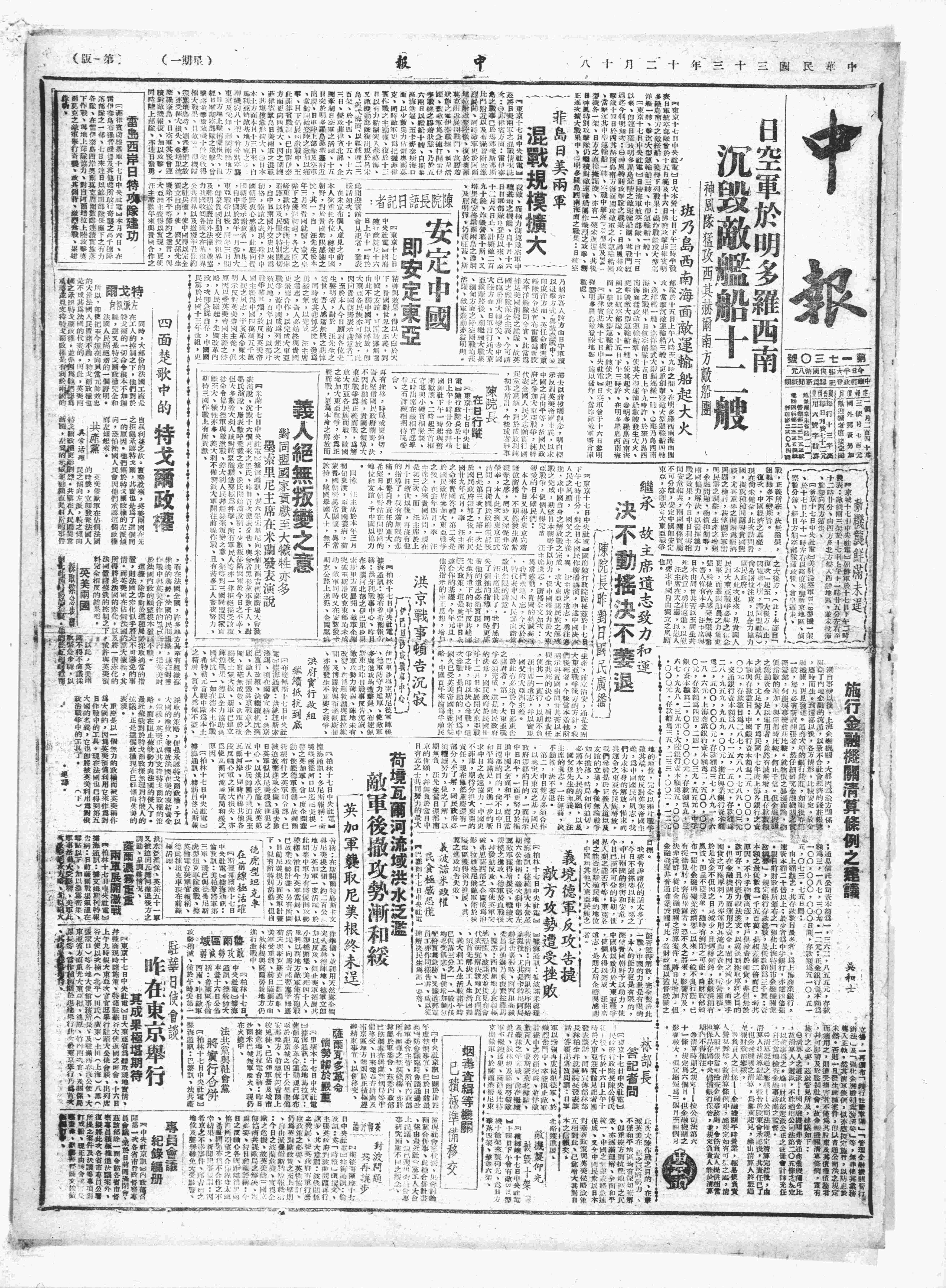 中华民国史大事记>19441218