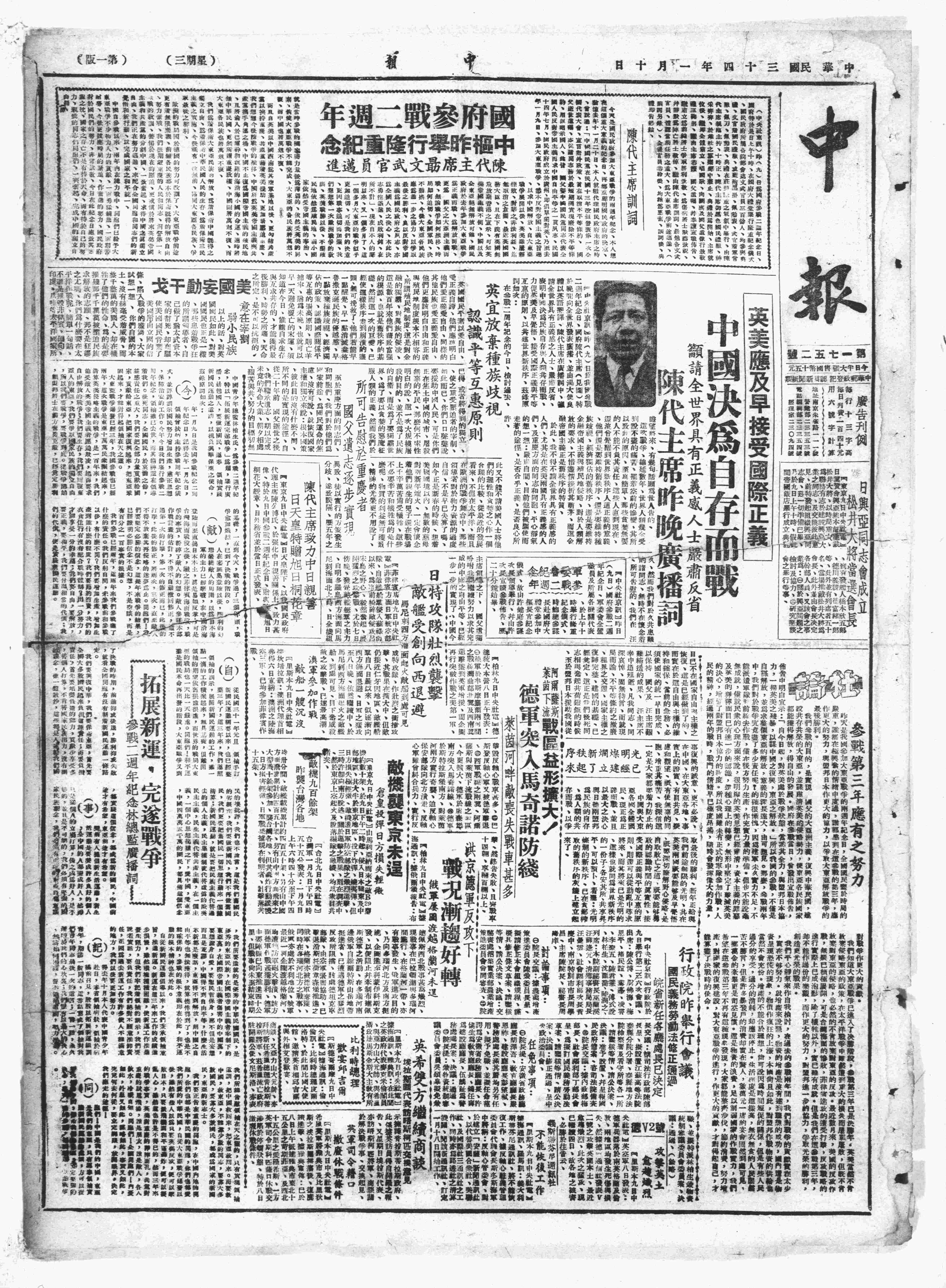 中华民国史大事记>19450110