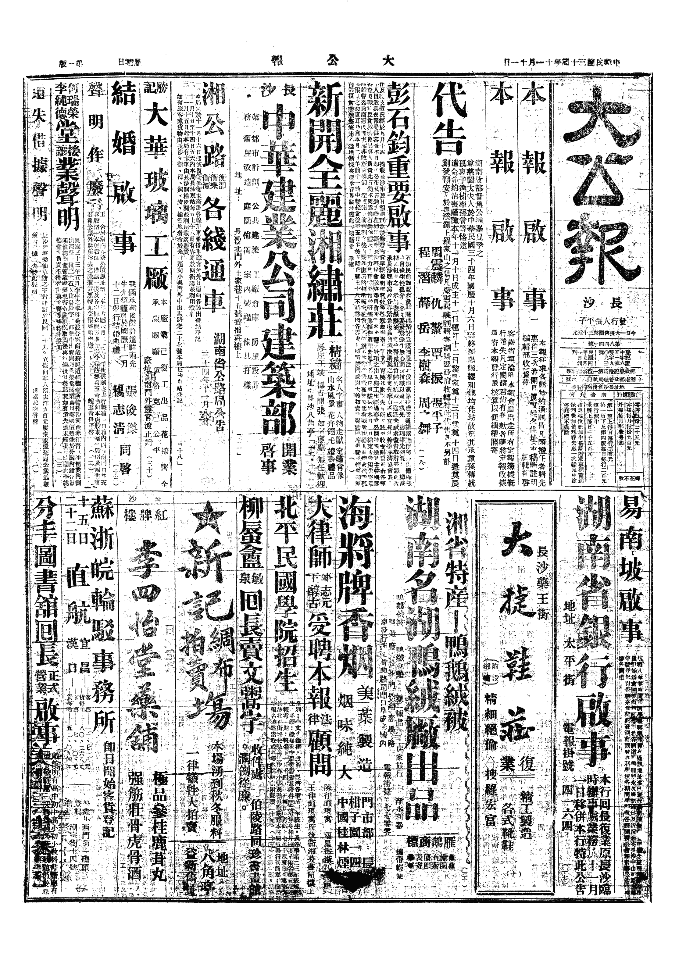 衡阳县请赈代表蒋先柘、廖云章在《湖南日报》著文公布衡阳县一年多来受寇灾损失概况。全县被掳杀113500余人,患虐痢诸疫死68400余人,因避敌逃亡境外者约272000余人,全县完全被毁之学校、公所、祠堂、民宅约35800余幢。