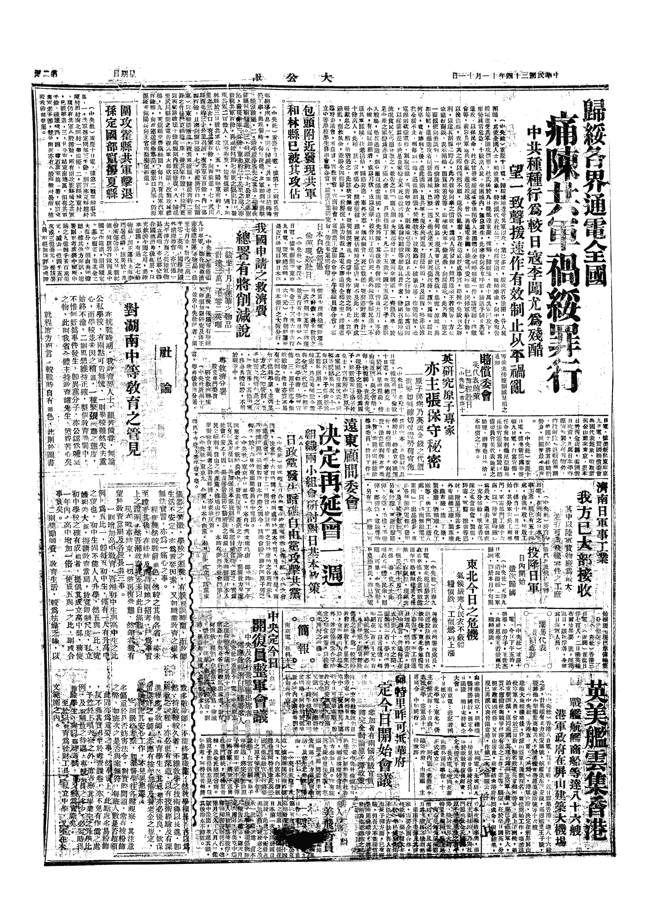 中华民国史大事记>19451111