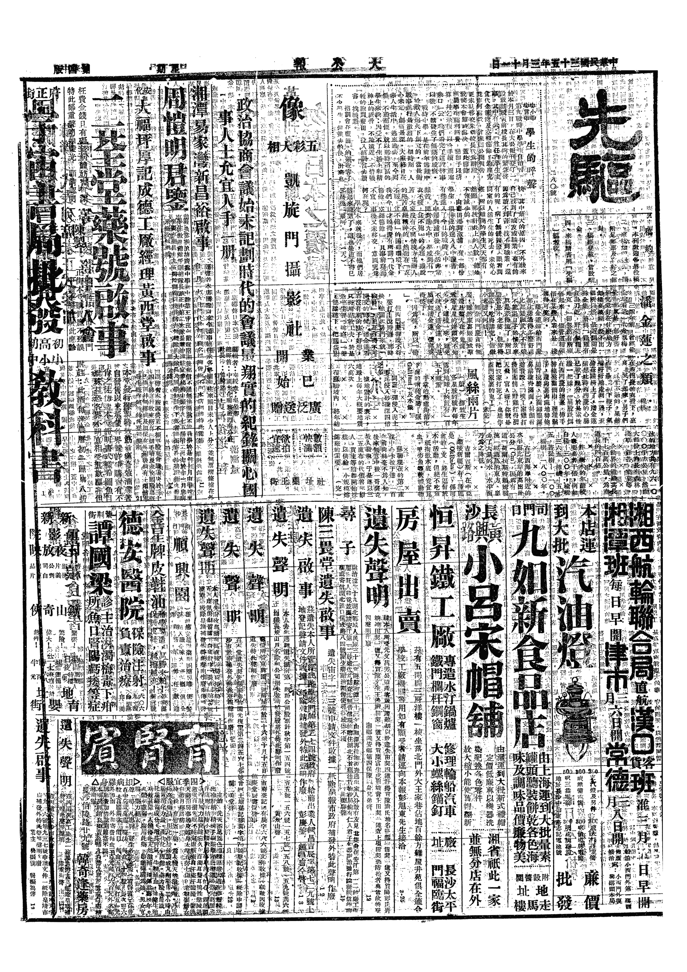 晨6时半即起身,用早点后,雇车赴太平门车站,已近8时。二等车极拥挤,走了五个车厢始得一座位,同座君亦新由渝来京,据云乘轮船共走25天,在宜昌、汉口皆须换船。火车9时起程,下午4时半抵上海北站。天下细雨,呼车至四马路吉升栈,已经客满,皆为外埠来沪办货之商人。余于细雨中,提一箱一皮包左找右寻,最后始于小客栈(五马路西上麟街新悦来栈)找得一房间,已是筋疲力尽,写一请假信与傅先生,出去用餐后,即睡。
