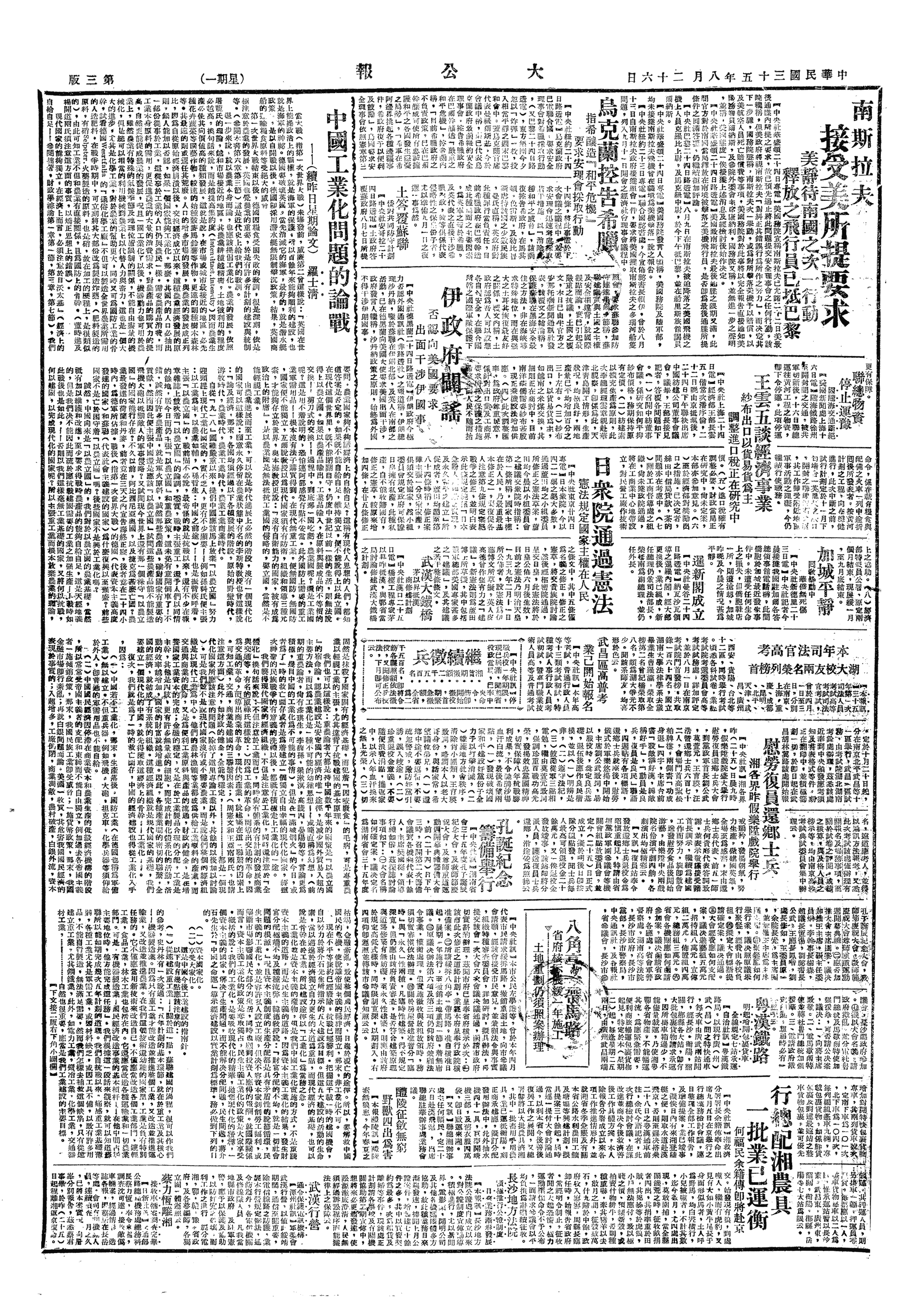 中华民国史大事记>19460826