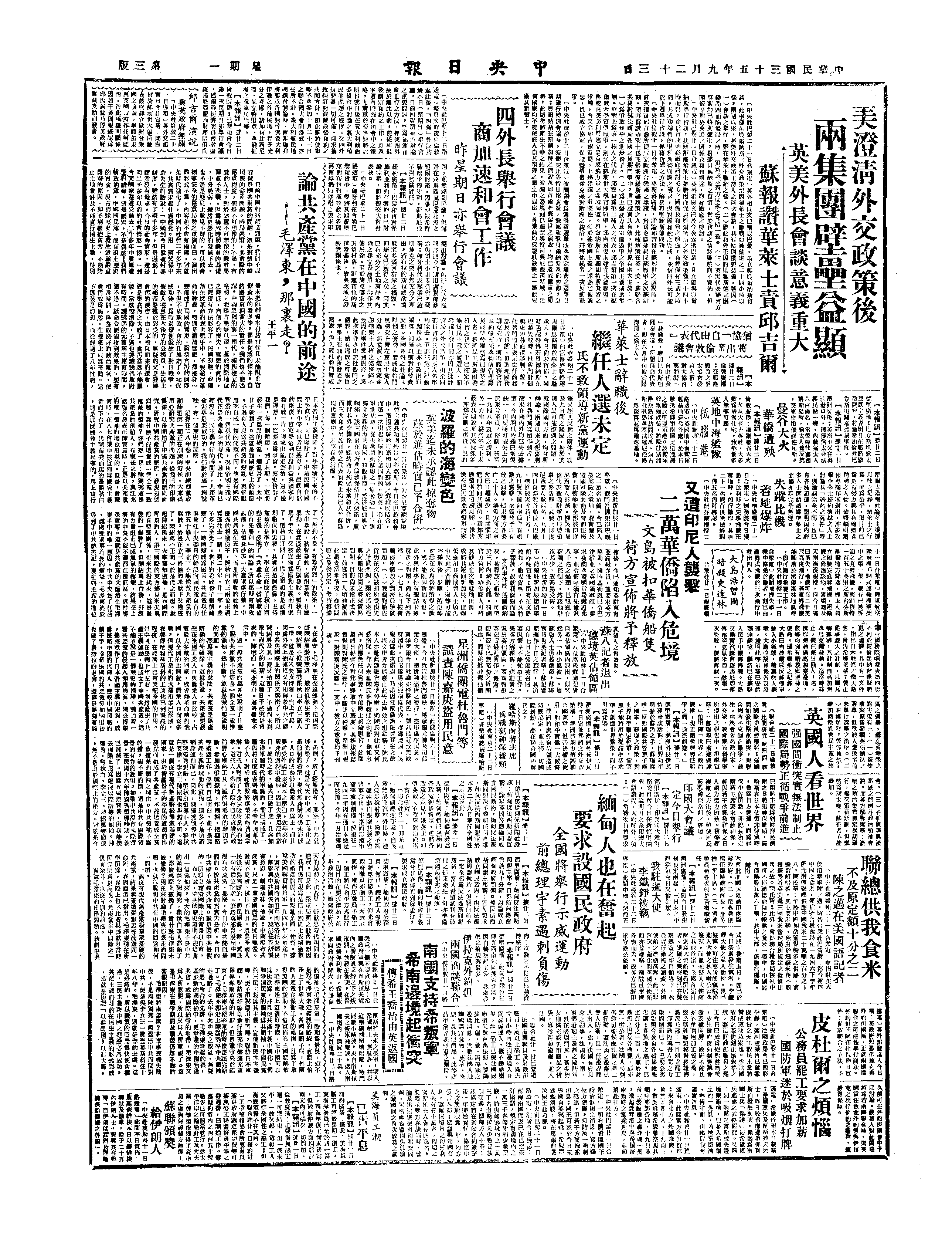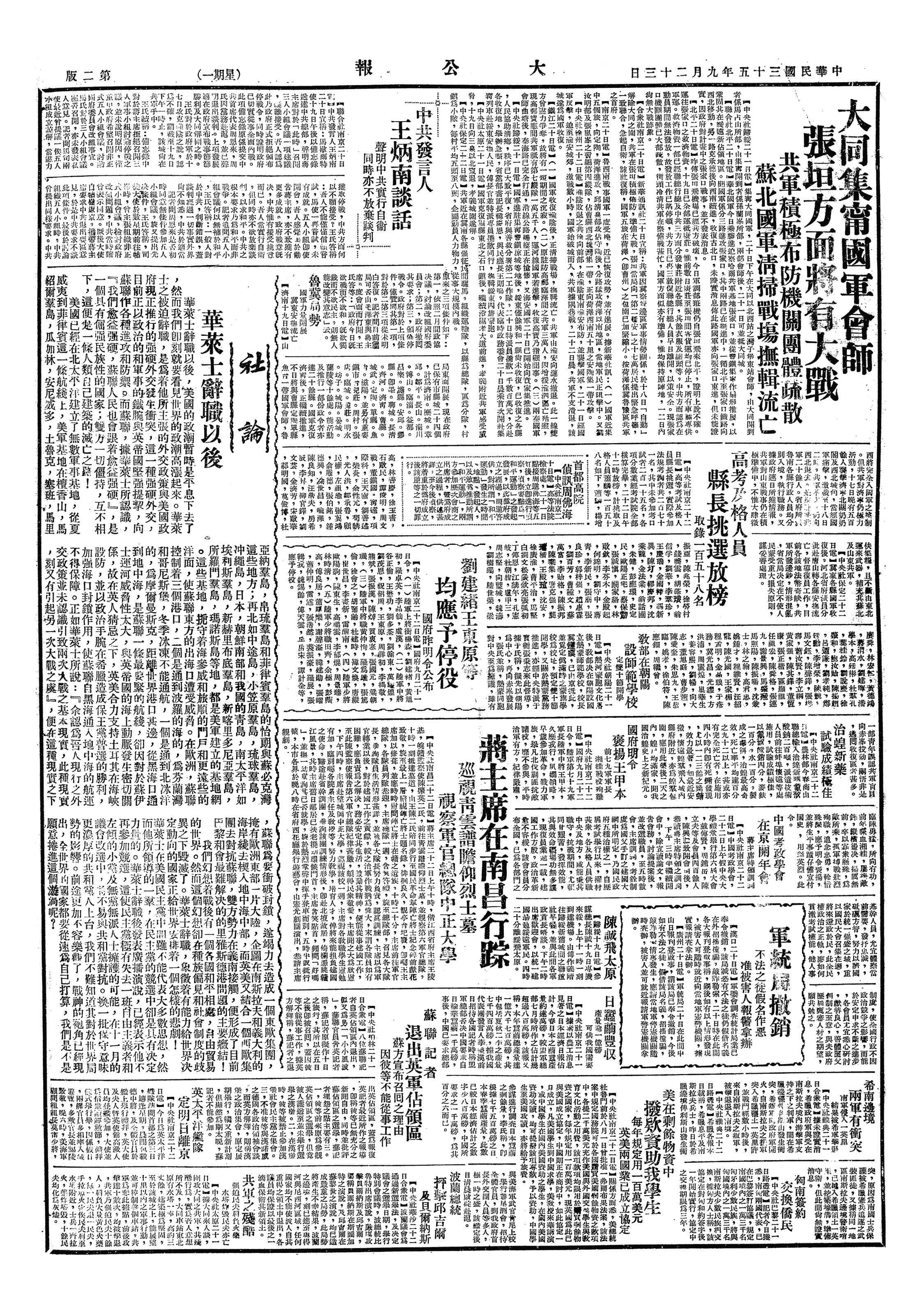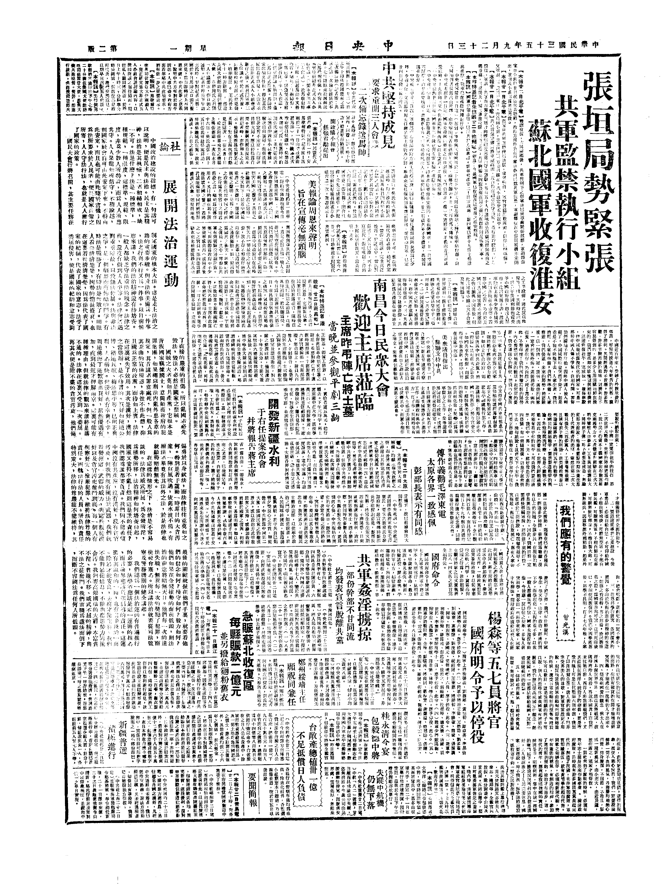 中华民国史大事记>19460923