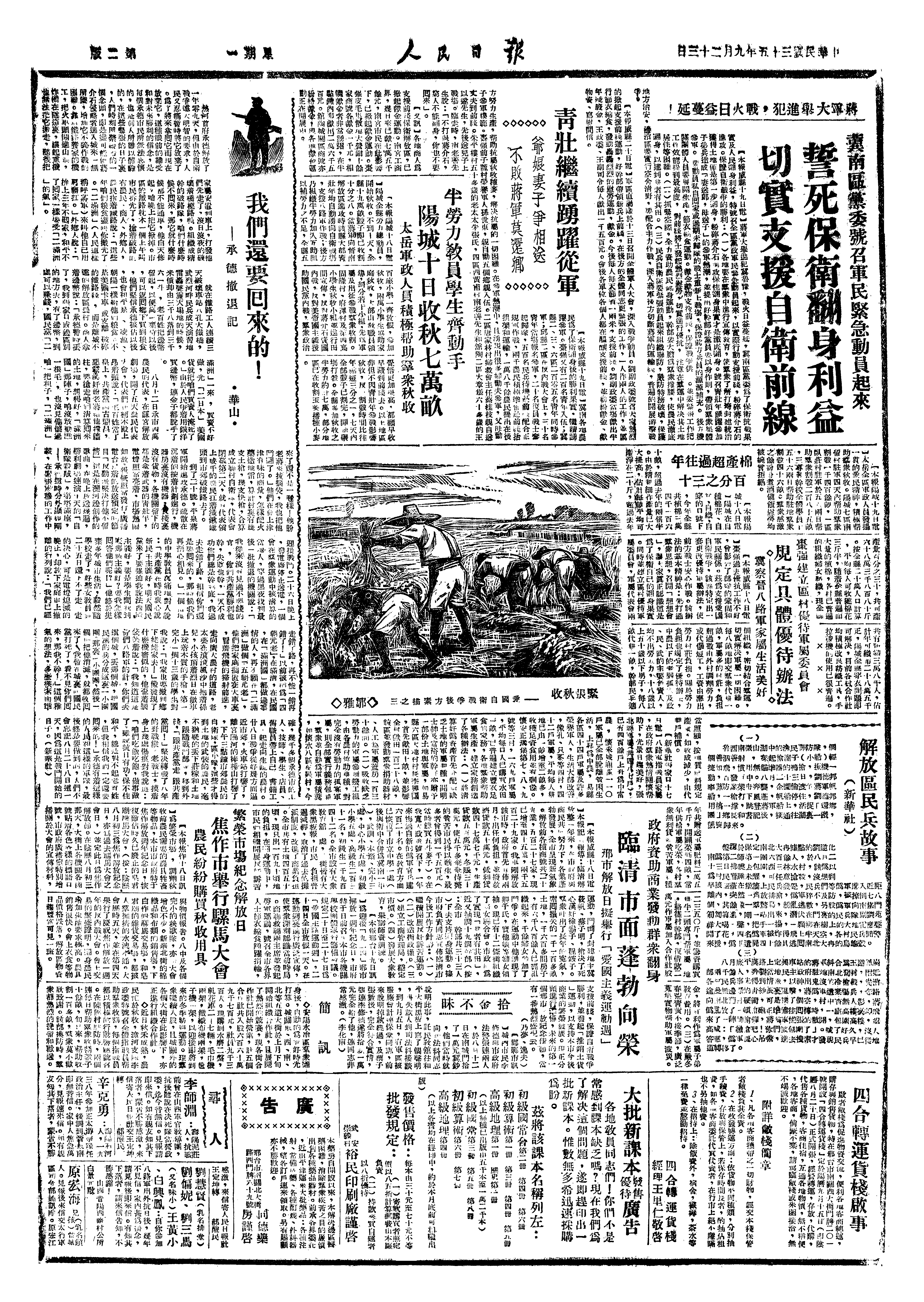 紧张秋收 ——爱国自卫战争后方素描之三