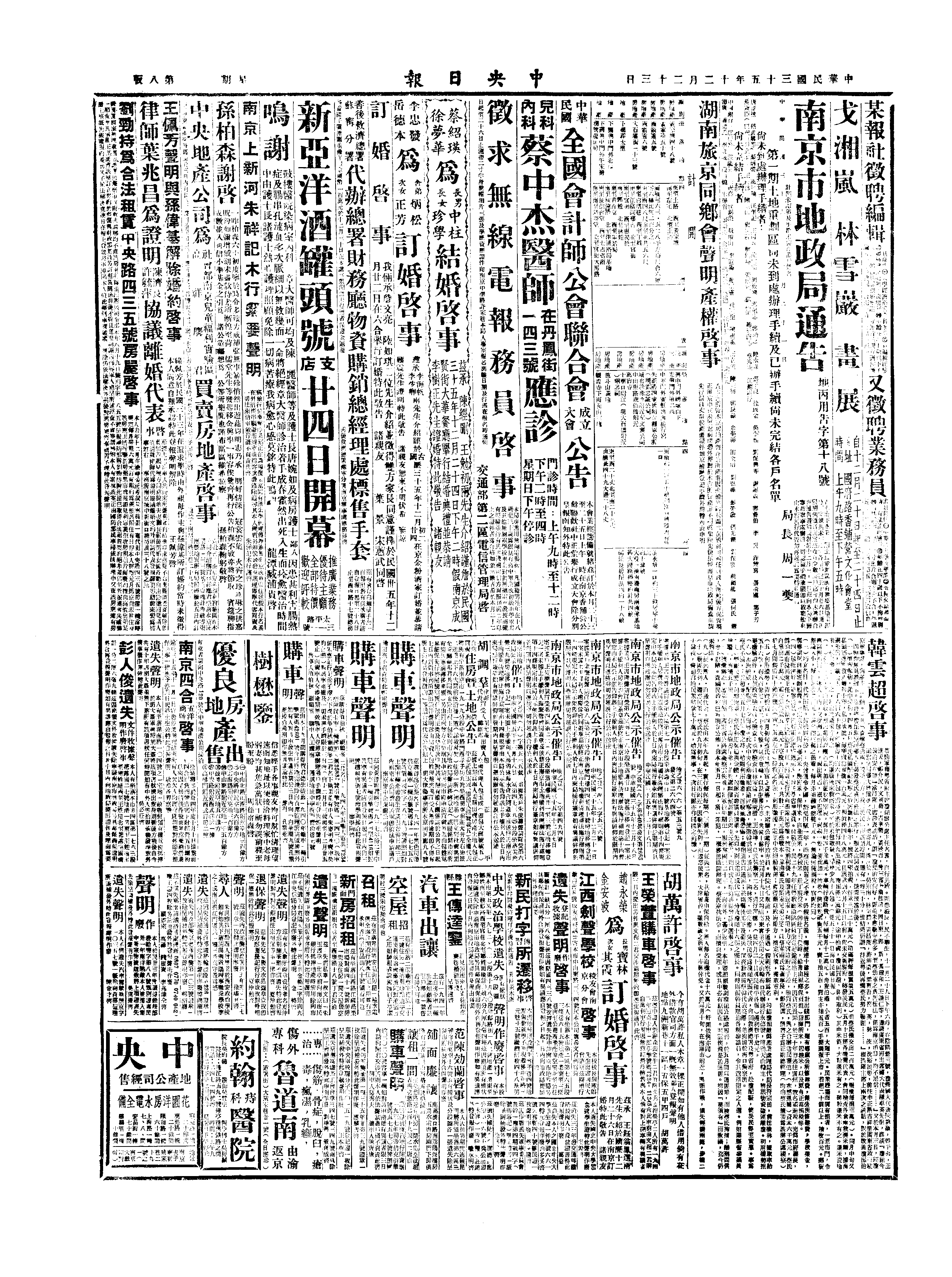 △ 《中央日报》报道,南京娼妓充斥,该市有妓女1.5万左右,有关当局正拟采取公娼制度。