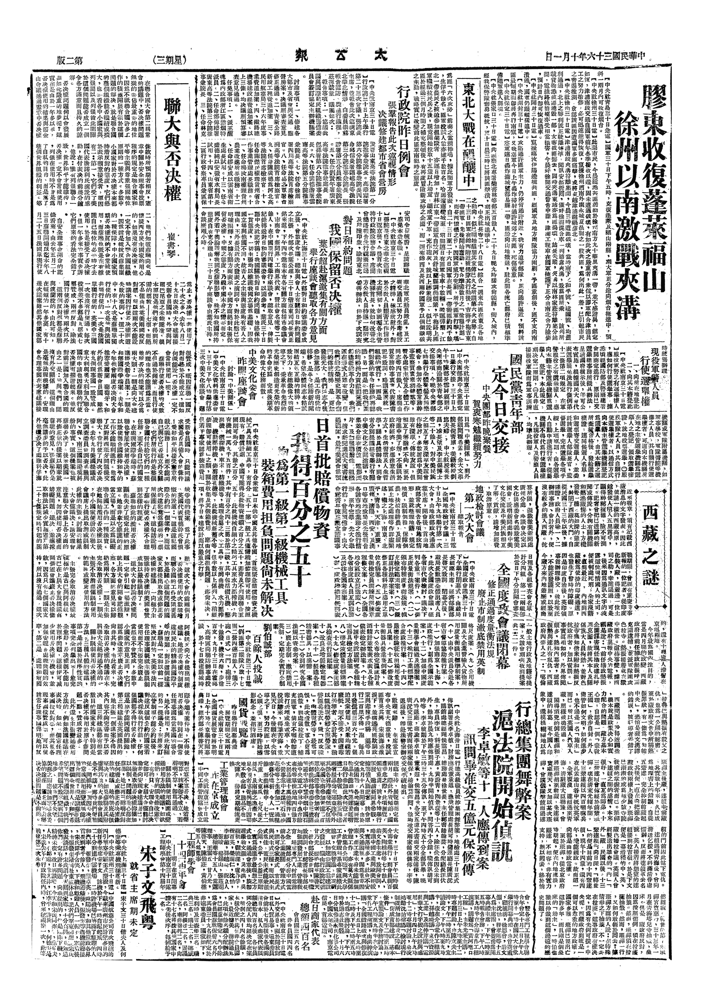 中华民国史大事记>19471001