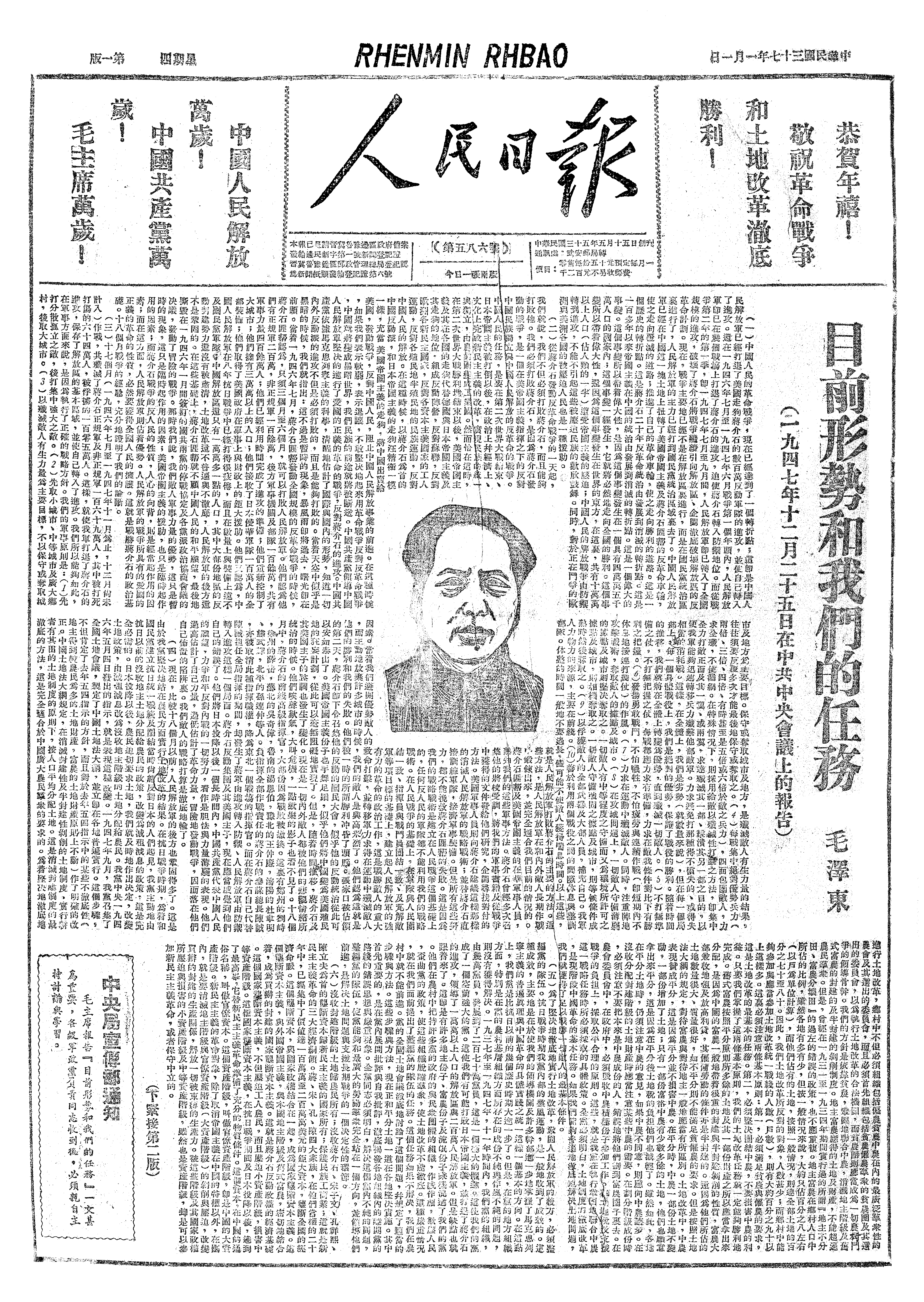 我们胜利的度过了1947年,迎接1948年,争取反攻中更大的胜利。