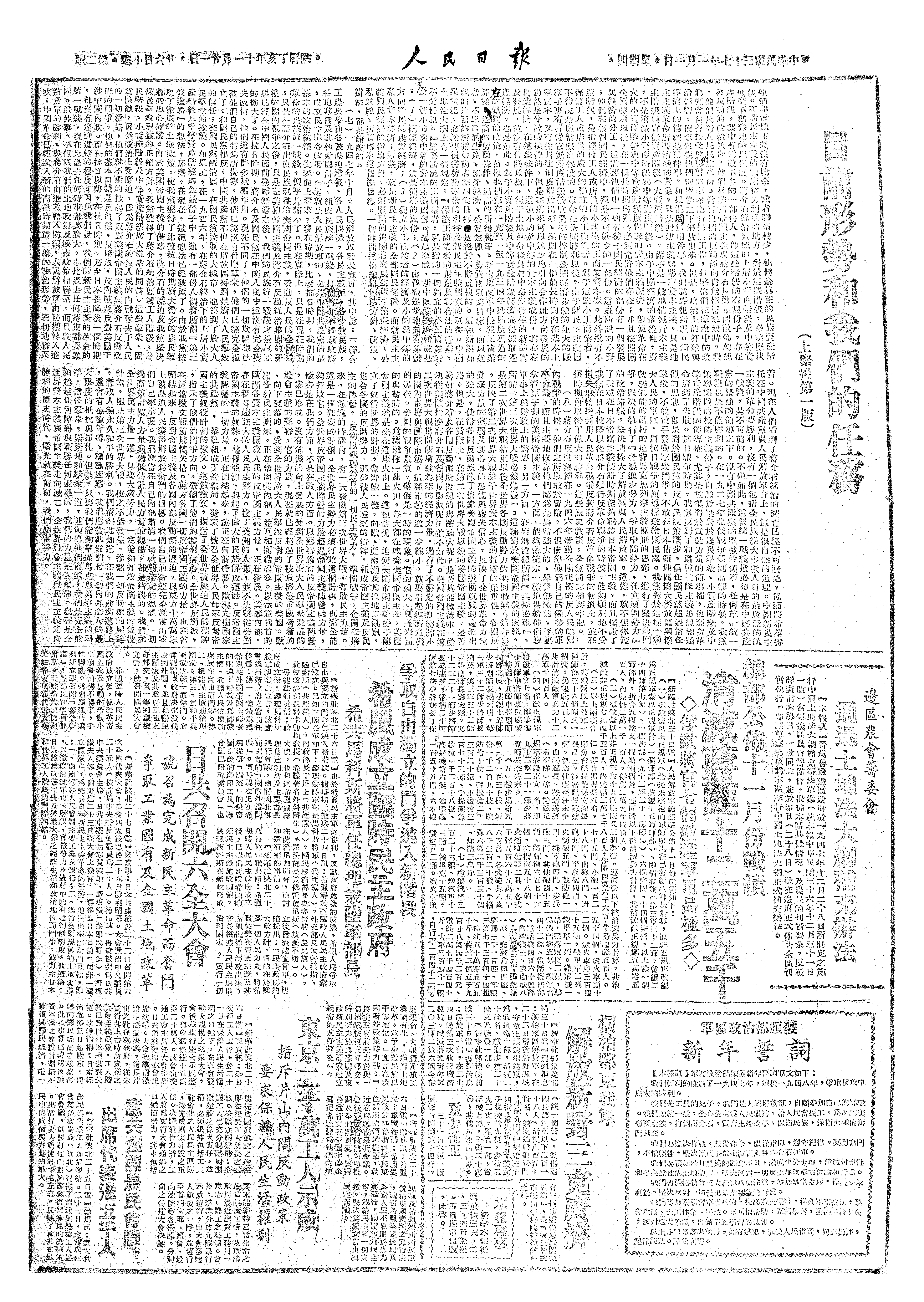 b2-日共召开六全大会号召为完成新民主革命而奋斗争取工业国有及全国土地改革